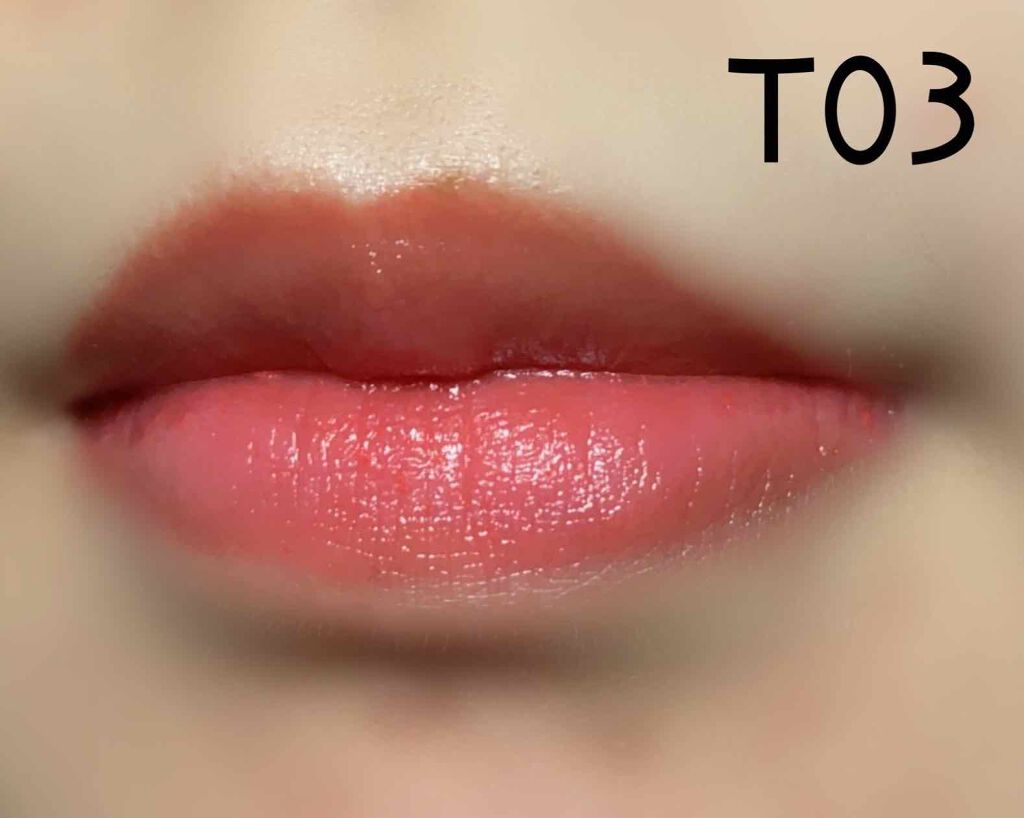 - <T02 ロゼミルクティー> トリエチルヘキサノイン、リンゴ酸ジイソステアリル、ワセリン、イソステアリン酸水添ヒマシ油、ダイマージリノール酸水添ヒマシ油、合成ワックス、ヘキサ(ヒドロキシステアリン酸/ステアリン酸/ロジン酸)ジペンタエリスリチル、ミツロウ、(HDI/トリメチロールヘキシルラクトン)クロスポリマー、メタクリル酸メチルクロスポリマー、(エチレン/プロピレン)コポリマー、ミネラルオイル、キャンデリラロウエステルズ、ヒマワリ種子ロウ、ペンタステアリン酸ポリグリセリル-10、トコフェロール、グリチルレチン酸ステアリル、スクワラン、セラミドNP、ナイアシンアミド、酸化チタン、黄4、酸化鉄、赤201、青1、赤202、水酸化Al、赤223 <T03 ディアレストレッド> トリエチルヘキサノイン、リンゴ酸ジイソステアリル、ワセリン、イソステアリン酸水添ヒマシ油、ダイマージリノール酸水添ヒマシ油、合成ワックス、ヘキサ(ヒドロキシステアリン酸/ステアリン酸/ロジン酸)ジペンタエリスリチル、ミツロウ、(HDI/トリメチロールヘキシルラクトン)クロスポリマー、メタクリル酸メチルクロスポリマー、(エチレン/プロピレン)コポリマー、ミネラルオイル、キャンデリラロウエステルズ、ヒマワリ種子ロウ、ペンタステアリン酸ポリグリセリル-10、トコフェロール、グリチルレチン酸ステアリル、スクワラン、セラミドNP、ナイアシンアミド、黄4、酸化チタン、赤201、赤202、酸化鉄、赤223、水酸化Al <T04 スウィートガナッシュ> トリエチルヘキサノイン、リンゴ酸ジイソステアリル、ワセリン、イソステアリン酸水添ヒマシ油、ダイマージリノール酸水添ヒマシ油、合成ワックス、ヘキサ(ヒドロキシステアリン酸/ステアリン酸/ロジン酸)ジペンタエリスリチル、ミツロウ、(HDI/トリメチロールヘキシルラクトン)クロスポリマー、メタクリル酸メチルクロスポリマー、(エチレン/プロピレン)コポリマー、ミネラルオイル、キャンデリラロウエステルズ、ヒマワリ種子ロウ、ペンタステアリン酸ポリグリセリル-10、トコフェロール、グリチルレチン酸ステアリル、スクワラン、セラミドNP、ナイアシンアミド、酸化鉄、酸化チタン、黄4、赤202、赤223、水酸化Al、赤201 <T06 サクラエンジェル> トリエチルヘキサノイン、リンゴ酸ジイソステアリル、ワセリン、イソステアリン酸水添ヒマシ油、ダイマージリノール酸水添ヒマシ油、合成ワックス、ヘキサ(ヒドロキシステアリン酸/ステアリン酸/ロジン酸)ジペンタエリスリチル、ミツロウ、(HDI/トリメチロールヘキシルラクトン)クロスポリマー、メタクリル酸メチルクロスポリマー、(エチレン/プロピレン)コポリマー、ミネラルオイル、キャンデリラロウエステルズ、ヒマワリ種子ロウ、ペンタステアリン酸ポリグリセリル-10、トコフェロール、グリチルレチン酸ステアリル、スクワラン、セラミドNP、ナイアシンアミド、酸化チタン、水酸化Al、赤223、赤104(1)、黄4、赤201