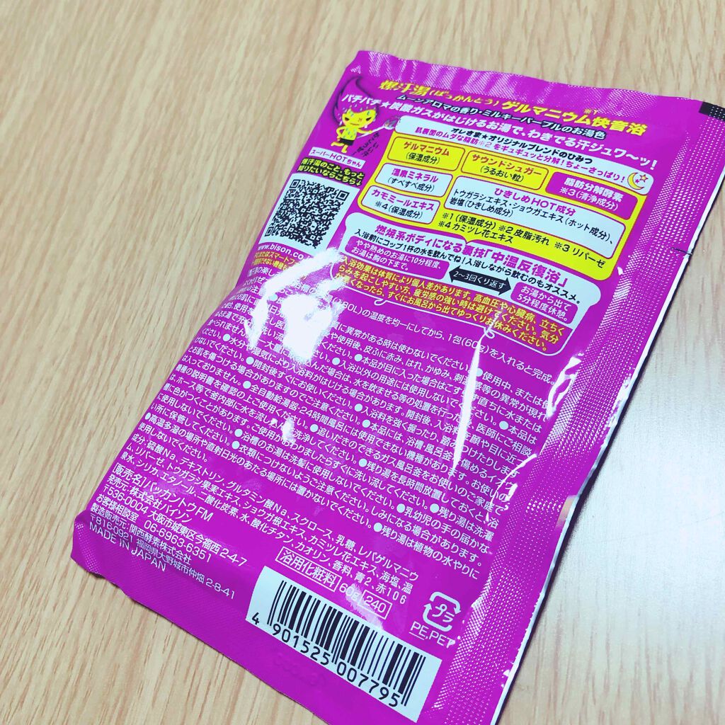 - パチパチッはじける炭酸※1・ゲルマニウム※2快音浴 脂肪分解酵素※3配合。ココロ・カラダスッキリ!! カモミールエキス(カミツレエキス)配合(保湿成分) ●ミルキーパープルのお湯色(白濁パープル) ※1サウンドシュガー(うるおい粒) ※2(保湿成分) ※3リパーゼ(清浄成分)