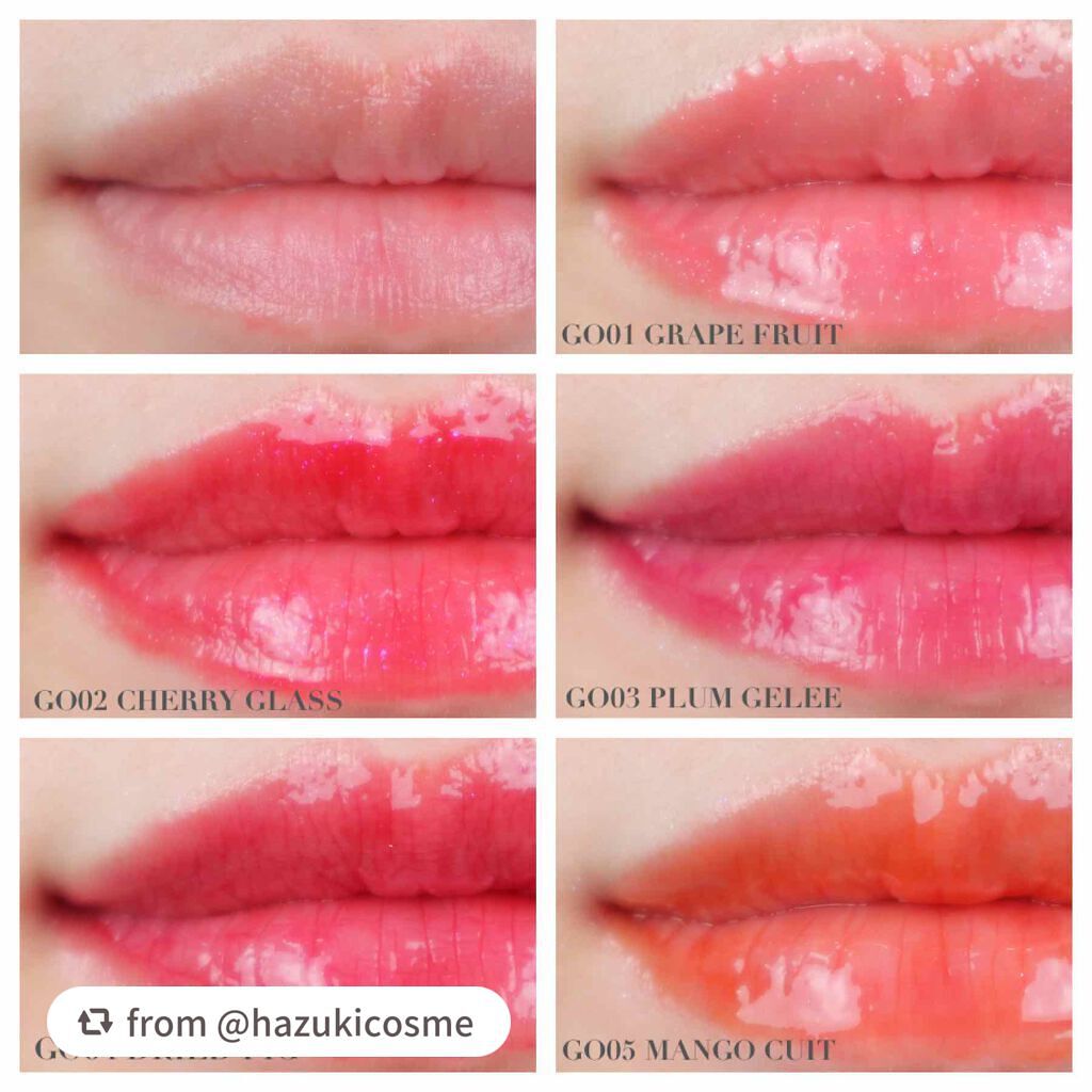- <GO01 グレープフルーツ> 水添ポリデセン、水添ポリイソブテン、トリイソステアリン酸ポリグリセリル-2、水添(スチレン/イソプレン)コポリマー、ヒドロキシステアリン酸エチルヘキシル、ジメチルシリル化シリカ、アルガニアスピノサ核油、ブドウ種子油、マンゴー種子油、オリーブ果実油、シア脂、マカデミア種子油、メドウフォーム油、ジメチコン、トコフェロール、トリメチルシロキシケイ酸、硫酸Ca、フェノキシエタノール、(+/-) ホウケイ酸(Ca/Al)、シリカ、マイカ、ラウロイルリシン、黄4、黄5、合成フルオロフロゴパイト、酸化スズ、酸化チタン、酸化鉄、水酸化Al、青1、赤202、赤226 <GO02 チェリーグラス> 水添ポリデセン、水添ポリイソブテン、トリイソステアリン酸ポリグリセリル-2、水添(スチレン/イソプレン)コポリマー、ヒドロキシステアリン酸エチルヘキシル、ジメチルシリル化シリカ、アルガニアスピノサ核油、ブドウ種子油、マンゴー種子油、オリーブ果実油、シア脂、マカデミア種子油、メドウフォーム油、ジメチコン、トコフェロール、トリメチルシロキシケイ酸、硫酸Ca、フェノキシエタノール、(+/-) ホウケイ酸(Ca/Al)、シリカ、マイカ、ラウロイルリシン、黄4、黄5、合成フルオロフロゴパイト、酸化スズ、酸化チタン、酸化鉄、水酸化Al、青1、赤202、赤226 <GO03 プラムジュレ> 水添ポリデセン、水添ポリイソブテン、トリイソステアリン酸ポリグリセリル-2、水添(スチレン/イソプレン)コポリマー、ヒドロキシステアリン酸エチルヘキシル、ジメチルシリル化シリカ、アルガニアスピノサ核油、ブドウ種子油、マンゴー種子油、オリーブ果実油、シア脂、マカデミア種子油、メドウフォーム油、ジメチコン、トコフェロール、トリメチルシロキシケイ酸、硫酸Ca、フェノキシエタノール、(+/-) ホウケイ酸(Ca/Al)、シリカ、マイカ、ラウロイルリシン、黄4、黄5、合成フルオロフロゴパイト、酸化スズ、酸化チタン、酸化鉄、水酸化Al、青1、赤202、赤226 <GO04 ドライフィグ> 水添ポリデセン、水添ポリイソブテン、トリイソステアリン酸ポリグリセリル-2、水添(スチレン/イソプレン)コポリマー、ヒドロキシステアリン酸エチルヘキシル、ジメチルシリル化シリカ、アルガニアスピノサ核油、ブドウ種子油、マンゴー種子油、オリーブ果実油、シア脂、マカデミア種子油、メドウフォーム油、ジメチコン、トコフェロール、トリメチルシロキシケイ酸、硫酸Ca、フェノキシエタノール、(+/-) ホウケイ酸(Ca/Al)、シリカ、マイカ、ラウロイルリシン、黄4、黄5、合成フルオロフロゴパイト、酸化スズ、酸化チタン、酸化鉄、水酸化Al、青1、赤202、赤226 <GO05 マンゴーキュイ> 水添ポリデセン、水添ポリイソブテン、トリイソステアリン酸ポリグリセリル-2、水添(スチレン/イソプレン)コポリマー、ヒドロキシステアリン酸エチルヘキシル、ジメチルシリル化シリカ、アルガニアスピノサ核油、ブドウ種子油、マンゴー種子油、オリーブ果実油、シア脂、マカデミア種子油、メドウフォーム油、ジメチコン、トコフェロール、トリメチルシロキシケイ酸、硫酸Ca、フェノキシエタノール、(+/-) ホウケイ酸(Ca/Al)、シリカ、マイカ、ラウロイルリシン、黄4、黄5、合成フルオロフロゴパイト、酸化スズ、酸化チタン、酸化鉄、水酸化Al、青1、赤202、赤226