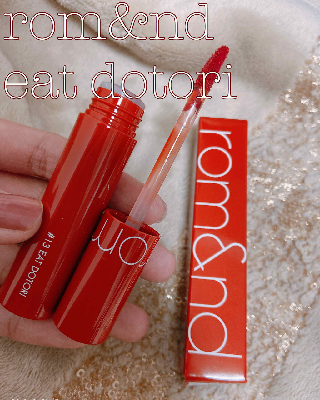 【rom&ndジューシーラスティングティントeatdotori】『なめらかで潤いのあるリップを表現。果汁のシロップのようなカラー感です。時間が経つにつれ凸凹を滑らかに。密着しボリューム感を表現します。』〜〜おすすめポイント🐥🌷〜〜○ティントで...
