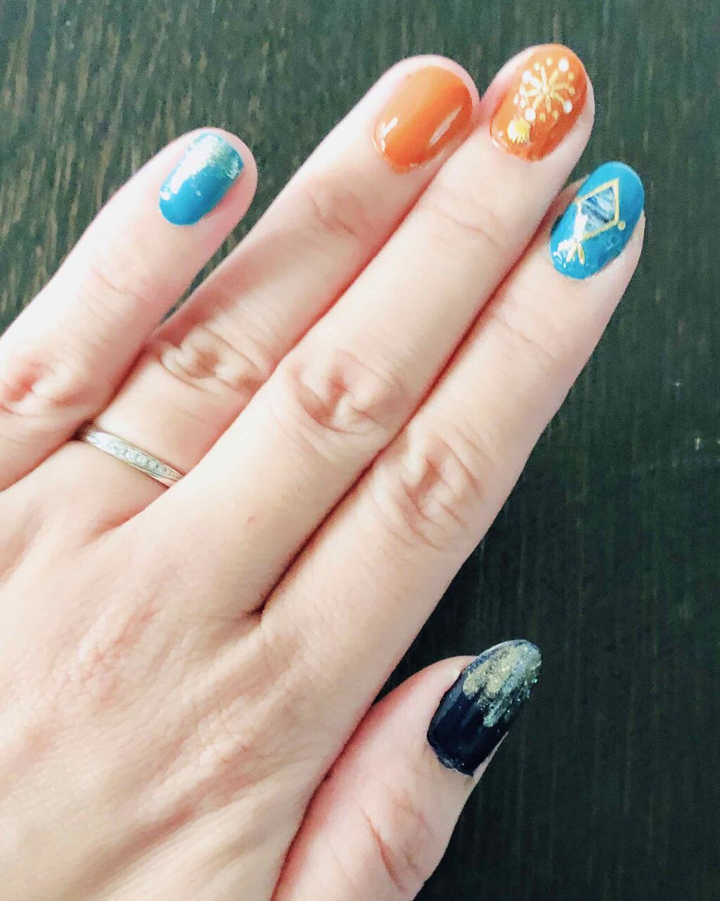 買ってからずっと温めていたブレンドネイル😹カラーは『クロムコッパー』✨ん❓…ネイル◯リックにもこんなカラーあったような…🤔上品なカラーでシーンを選ばない秋カラー🍁肌にスッと馴染むようでいてミラーみたいな質感🙀✨単色推しカラーです💕あ。フレンチ...