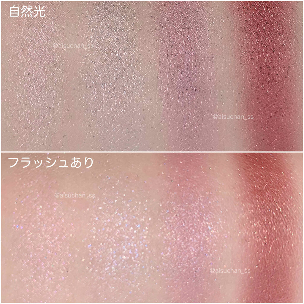しっとりなめらかな粉質で、肌に光が溶け込む。 ツヤの美しさや発光具合は写真の通り。 ひと塗りで極上の艶を纏うことができます。 私が1番感動したのは 03 パールグロウ 水色やパープルをはじめとした細かいラメがぎっしり。 まるでダイヤモンドのような輝きでこれが最高💎 いざ肌に乗せると透明感たっぷりで白浮きしません。 今日アイシャドウとして使ってみたらまぶたが濡れたように艶めいて最高だった!! ラメ大好き芸人のみなさんは絶対チェックして欲しいです。 パケもしっかり可愛いです♡ 中身も見た目ももはや無敵。 これ、買わない理由ある??