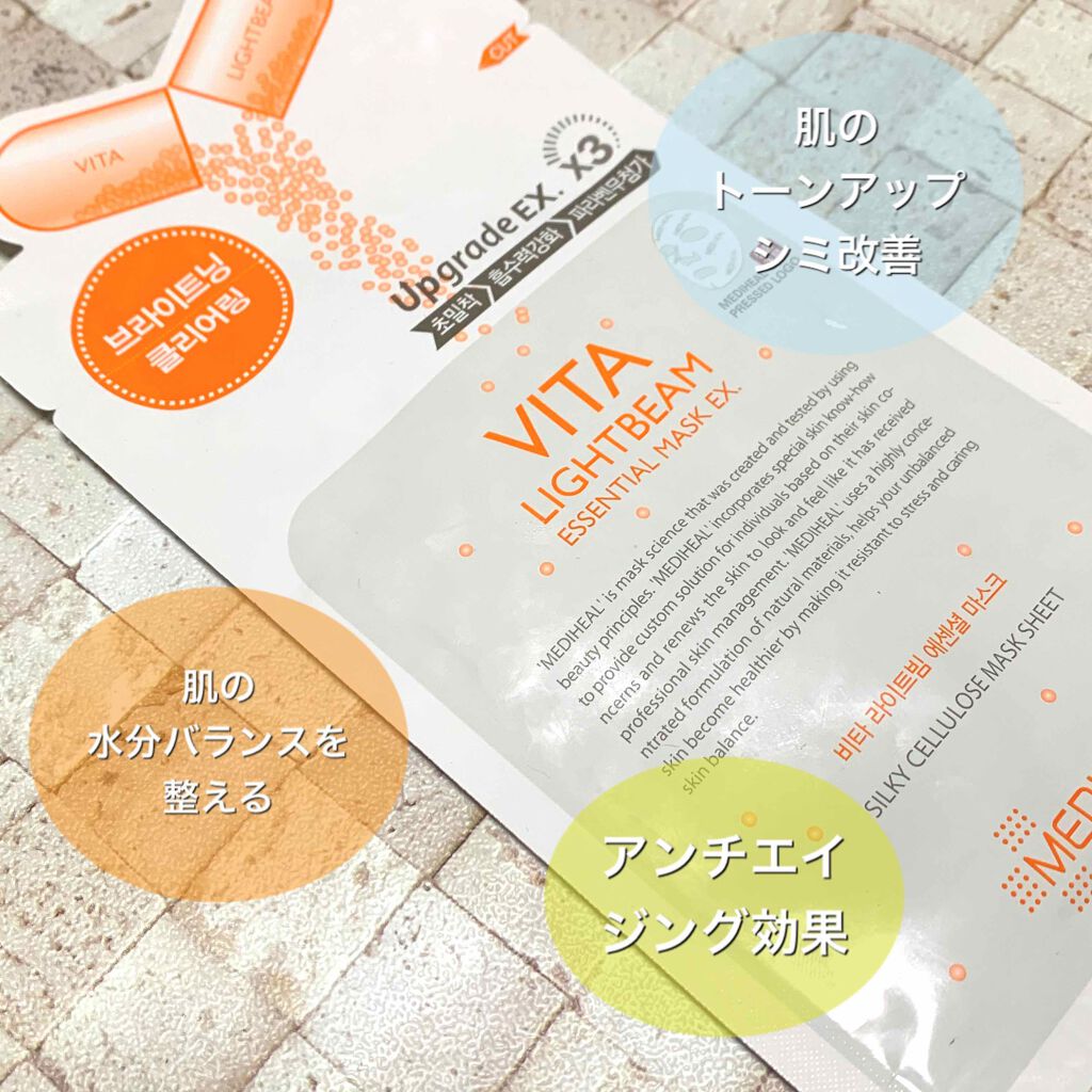 ビタミンC誘導体配合でブライトニング、クリアリングケアができる。透明感のある明るい肌に導いてくれる。 わたしの大好きなセルロースマスク♡ 薄いのにとぅるとぅるで密着力が高い!! そして薄いのにすぐに乾燥してしまうこともない!! つけた時には薄ーくしか見えないMEDIHEALのロゴが、15分ほど経つと少しずつ浮き出てきて、剥がすタイミングを知らせてくれます! 剥がすとしっかりと保湿されていて、潤ったおかげか一回の使用でもくすみが軽減し、トーンアップしたのを感じました。 MEDIHEALのマスクら初めて使用しましたが、これは色々な種類を試したくなる!!