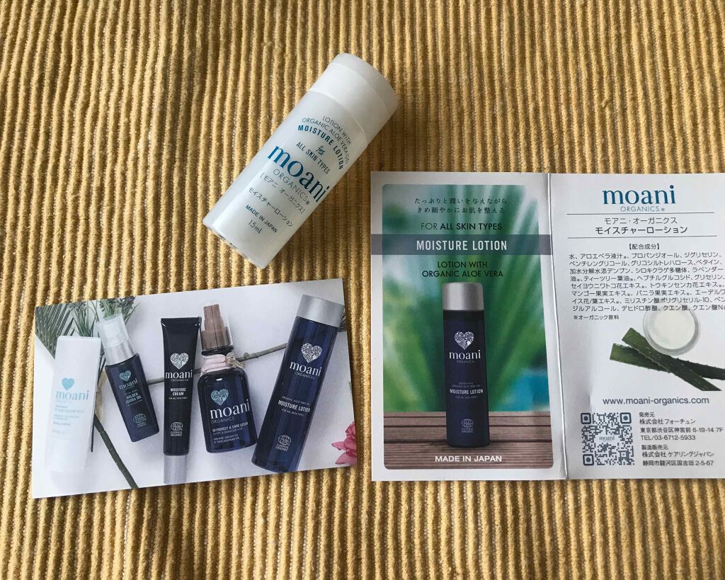 moani モアニ オーガニクス モイスチャーローション 180ml 3700円 ブルームボックスにミニサイズがはいっていたので使用してみました(*^^*) 原料の99%が天然由来成分なの敏感肌の方も安心して使えそうです。 ~使用感~ テクスチャーは少しトロミがあります。 伸ばすと肌なじみがのくよく伸びます。 ベタつきもなくさらっとするけどモッチリしたお肌になりました。 香りはオーガニックの特有な香りです。 消毒のようなサッパリした清潔感のある香りでスッキリできて好きです。