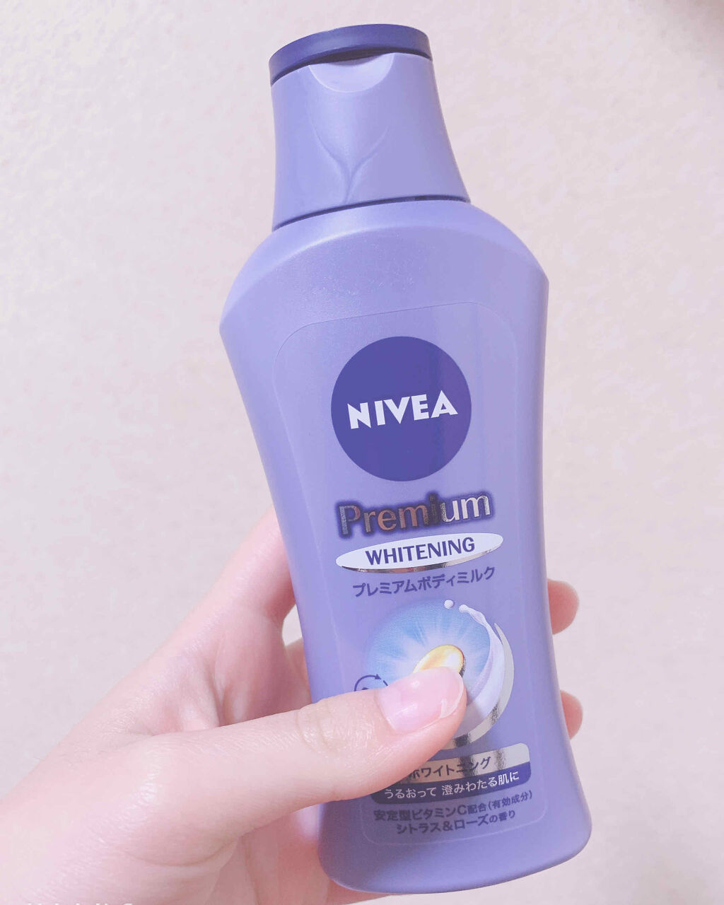 初投稿なので文章がおかしいかもしれませんが、ご了承ください😣初レビューする商品は、ニベアのプレミアムボディミルク ホワイトニングという商品です!これを私はいつも寝る前にマッサージしながら塗っています!テクスチャーは軽めで、スルっと伸びます。香...