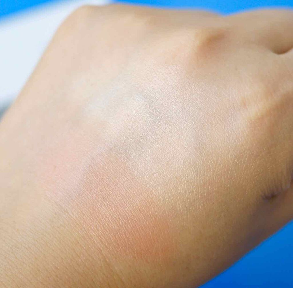 弾力のある“生ぷにっ質感”が特徴。ゲルを採用していて、ぷにぷに気持ちイイ❤ 肌への密着度が高く、ぴたっとフィットする。なのに、肌に伸ばすと素早くサラサラに! オイルとたっぷりの微細パール配合で、パウダーでは表現できない生っぽい艶感が✨ 透け感のあるアプリコット系のカラーで、誰にでも合いそうな色味。 10種の美容保湿成分配合で、乾燥も感じなかった。