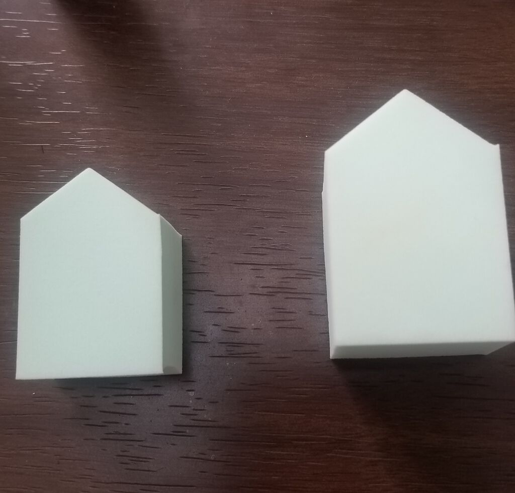 DAISOメイクアップスポンジバリューパックハウス型14個ダイヤモンド型15個それぞれ¥110ベースメイクは指で塗ることが多かったんだけど、これを使うと圧倒的に早く綺麗に仕上がるからついつい買っちゃう✨ちなみに私は水を含ませてプルプルにして使...