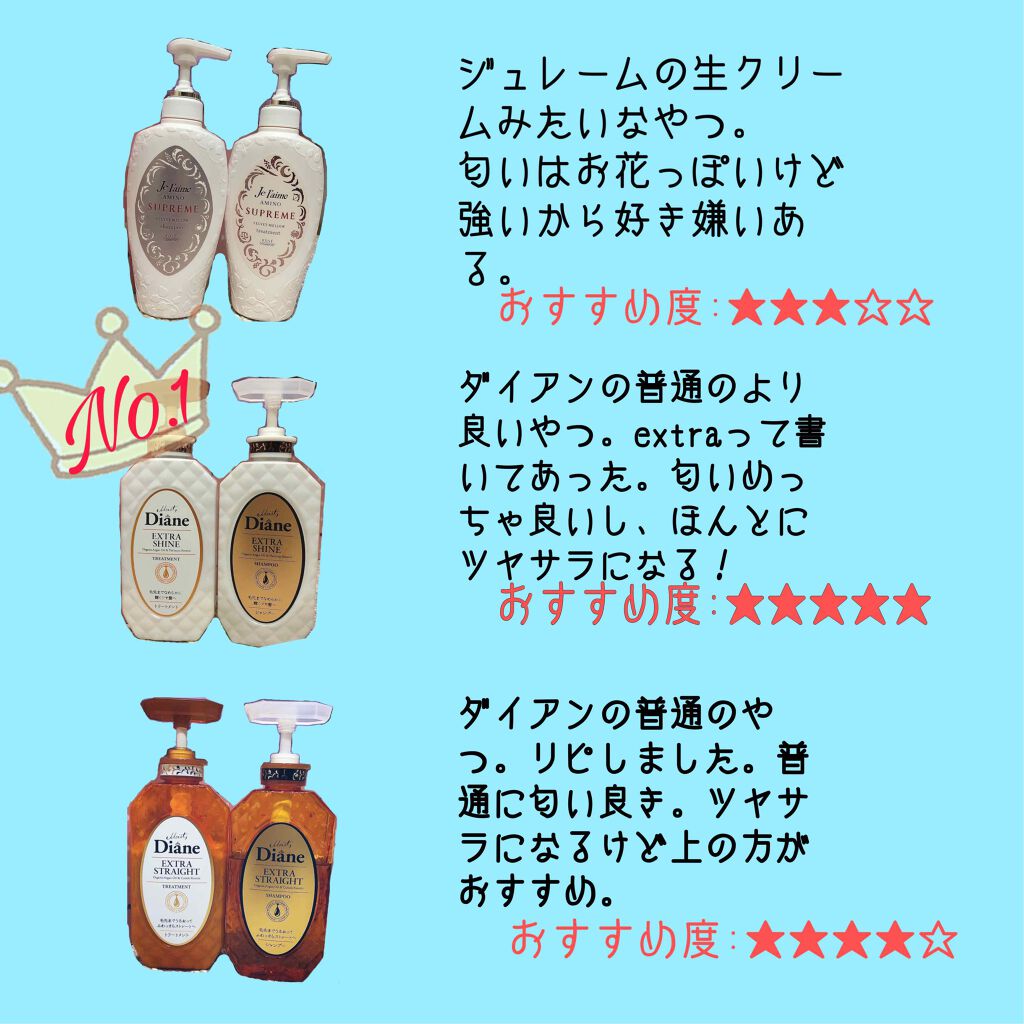 ダイアンのエクストラダメージリペアです💕プチプラで髪の毛サラサラになるものを探していました✨価格帯は1000円以下安価なだけに洗浄成分はそれなりですが、おそらくトリートメントのコッテリ具合も相まってのことかと思います🤔強力な洗浄成分じゃないと...