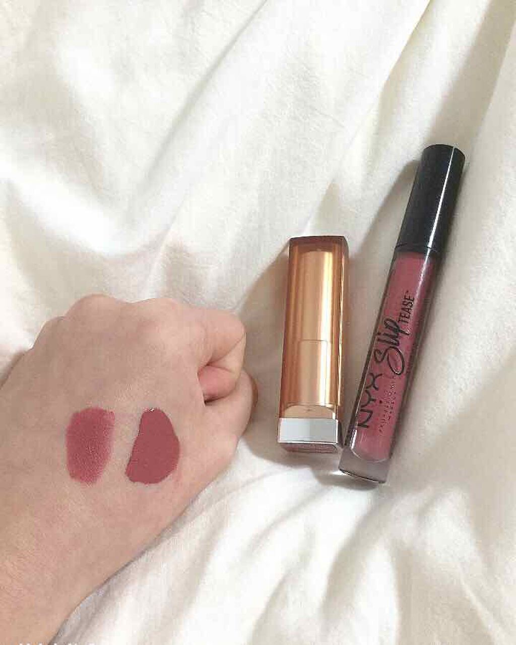 お気に入りリップ💄MAYBELLINE♡(左)カラーセンセーショナルリップスティックCMNU14NYX♡(右)SlipTEASELipoil08私の毎日メイクで欠かせないリップで、この2本はマットです!好みは別れますが、しっかりマットなのでオ...
