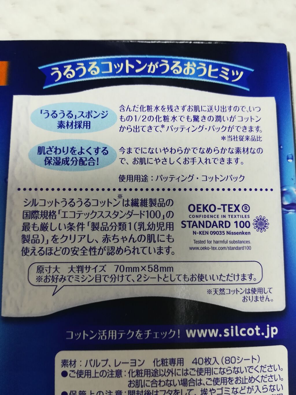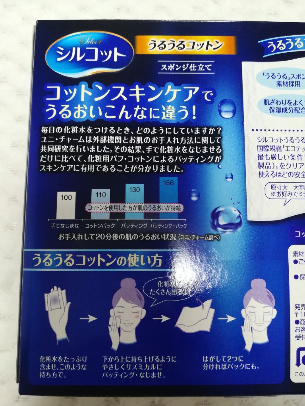 - ポイント①1/2の化粧水で驚くほどうるおう※1 じゅわっと染み出るスポンジ構造採用。化粧水の出てくる量がシルコットの2倍以上で、コットン本体に化粧水を殆ど残しません!※1当社製品比 ポイント②パッティングしても、はがしてもパックしても毛羽立たず、やわらか ポイント③2枚にはがせて目元にピタッと密着 2枚にはがしてパックできます。 目元にフィットしやすいカーブ形状です。