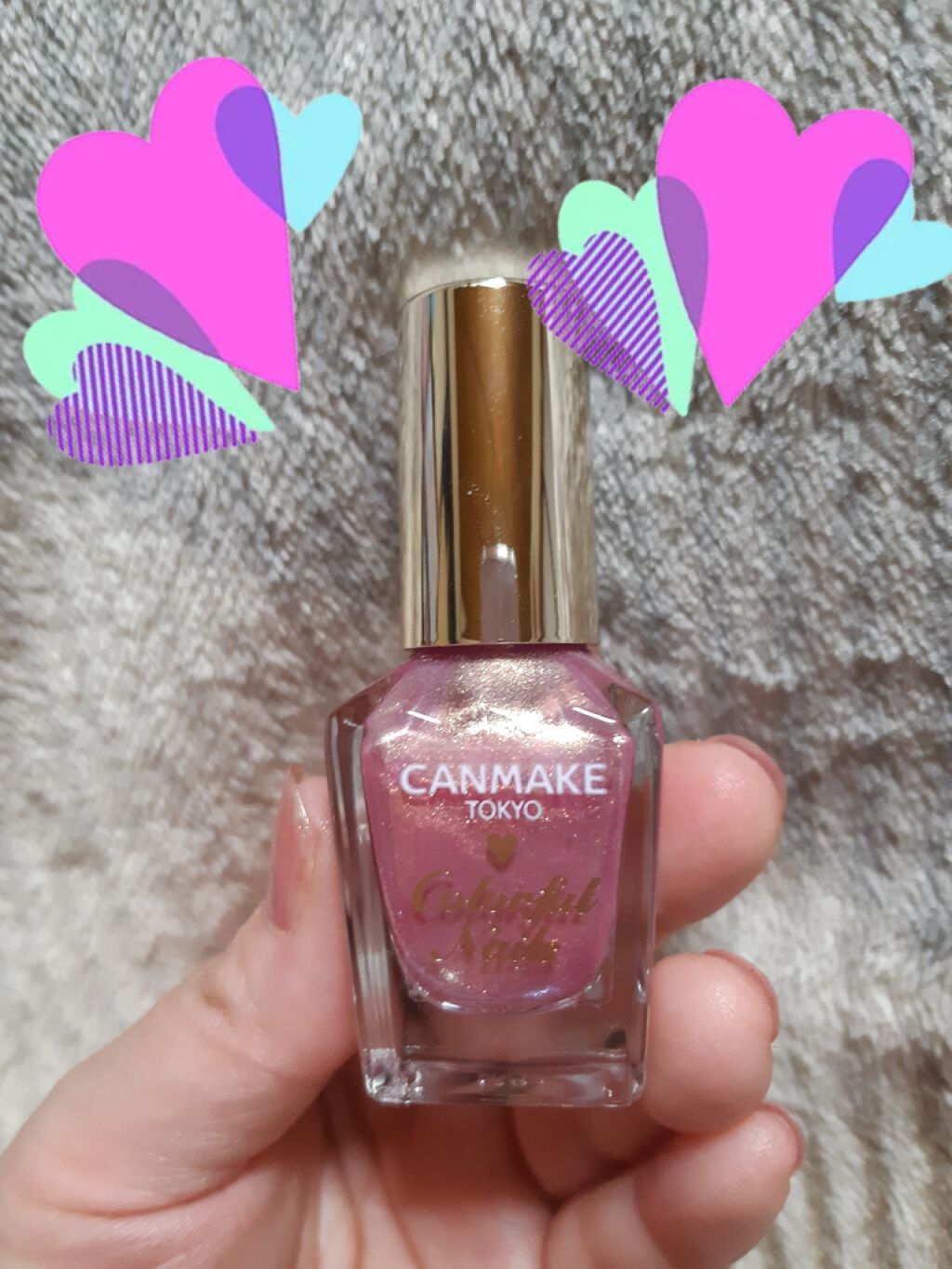 キャンメイク カラフルネイルズN114 ピンクチュチュ2度塗り白みピンクですシャンパンゴールドのラメが入っていてとても綺麗です角度によってもカラーが違うので光に当ててみてしまいます高級感あるカラーでこれで約400円てとてもお得ですね✨キラキラ...