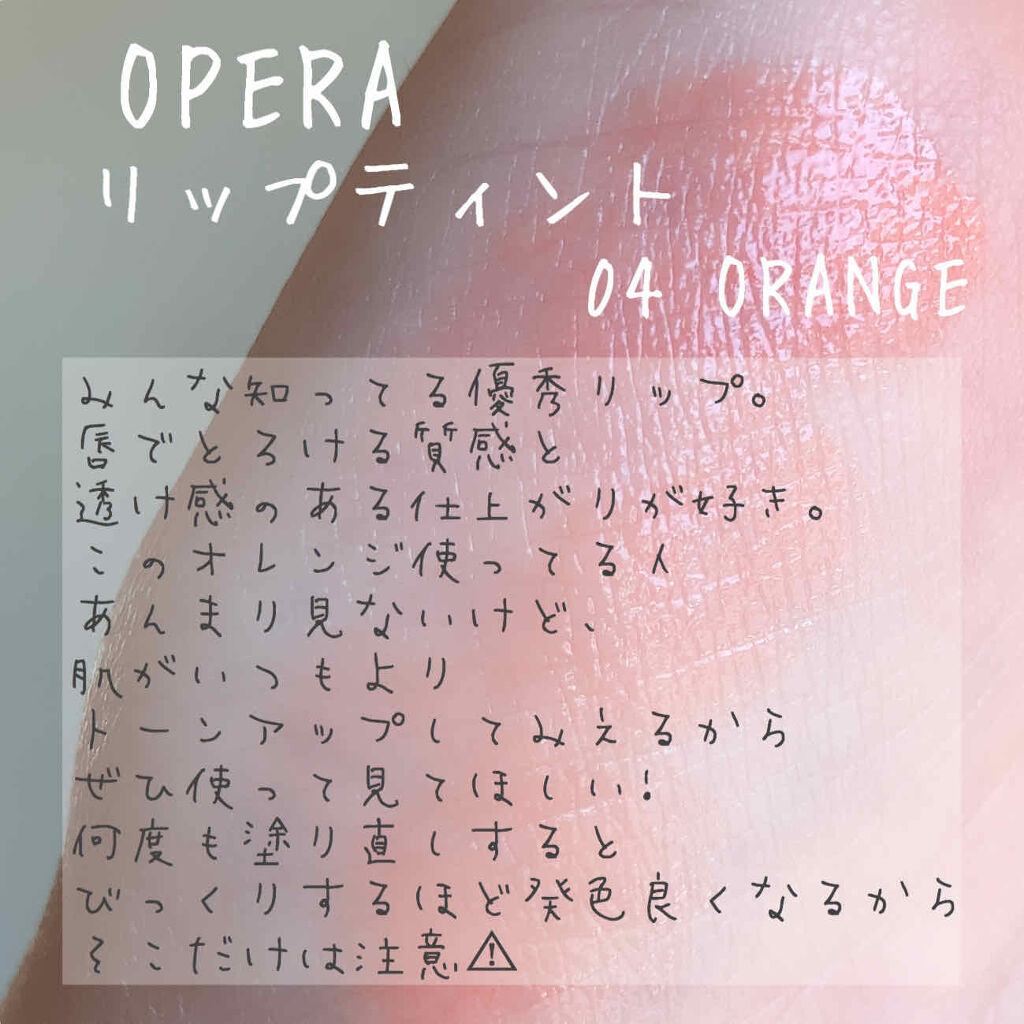 オペラ リップティントN 13トープ 最近暗髪にしてブラウンメイクをよくするのでトープを選択︎⸜❤︎⸝ こちらはオレンジ強めのブラウン! 美容オイルが入っているからか、するすると塗れてオイル感があって保湿リップしなくても1本でツヤツヤに✨️ 色持ちとツヤ感はめっちゃいいです◎ 濃すぎず薄すぎなくてムラになりにくいから塗り直ししやすいのもオススメ♡