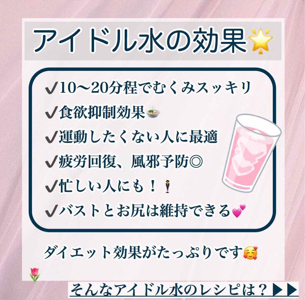 「アイドル水」ってご存知ですか??いま、韓国のダイエット女子に大流行してるんです!!なんと、飲んで10〜20分程でむくみがリセット!!運動したくない子にもおすすめ💕レシピもすごく簡単なので、ぜひ試してみてくださいね💕レモンはあってもなくても大...