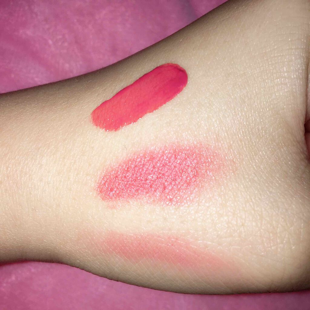 ペリペラ💄Aリップカラー1.〈写真〉上からベタ塗り馴染ませティッシュで擦った.飲み物飲んだり食事してもなかなか色が落ちなくておすすめです!(クレンジングとかメイク落としのシートを使えばちゃんと落ちるので次の日が学校とかでも安心して使えます)色...