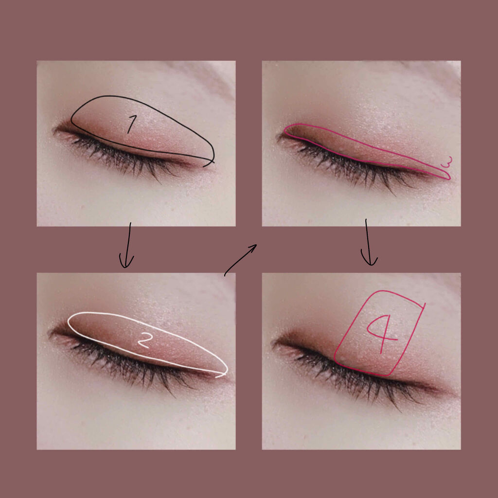 ※目だらけ画像注意※👀私の目のスペック・垂れまぶた(まぶたが伸びた状態)・まつ毛を上げると二重の線は出てくるが、別に二重になるわけじゃない😇・要するに一重🗝メイク方法①1番の色をアイホール全体に。正直ここは適当②2番の色を目を開けてぎりぎり見...