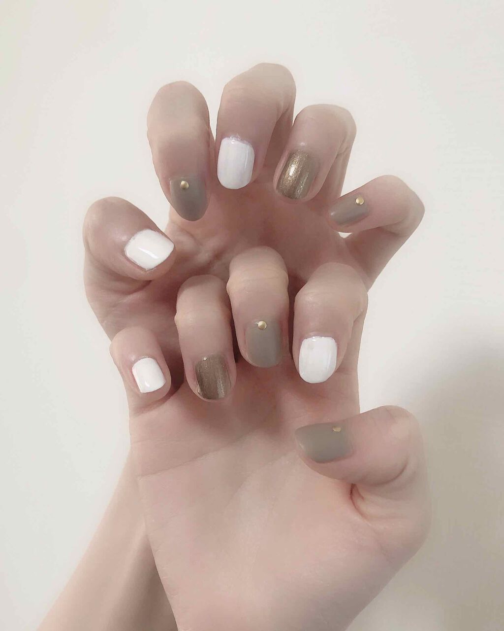 可愛いソフトモカカラーとゴールドがおすすめすぎます☕️🦢秋らしさ抜群なブラウンネイルをご紹介します🧸⸝⋆★✩✯✮✰✪☽✧✶NAILHOLICマニキュア NostalgicColorBR324一度塗りでも発色バツグンなブラウンカラーは、ほのかに...