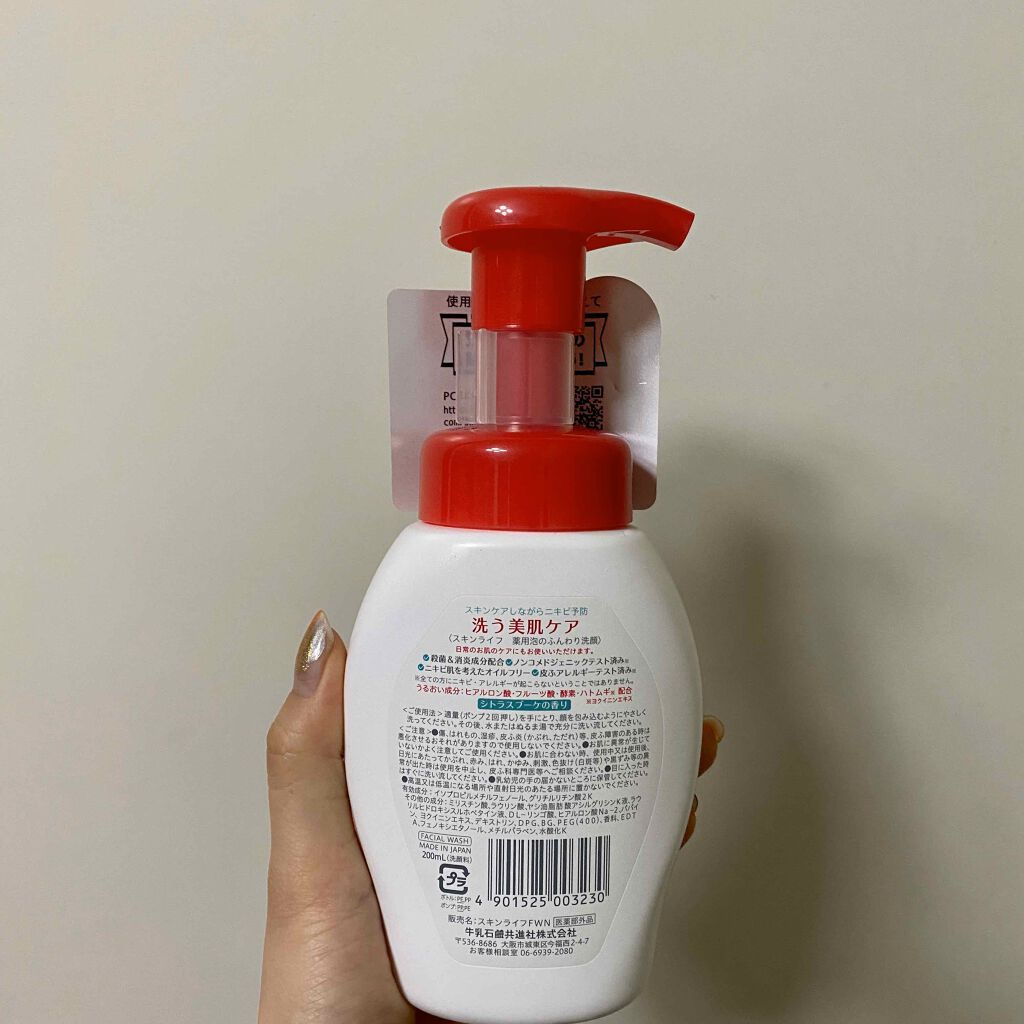 - ニキビ予防しながら美肌ケアができる牛乳石鹸のスキンケアシリーズ。ワンプッシュで簡単ふんわり泡。ニキビのもとや毛穴汚れをすっきり落とし、ニキビを予防して毛穴の目立たない赤ちゃん肌に。保湿成分として、ヒアルロン酸・ハトムギ(ヨクイニンエキス)・ツボクサエキス・酵素を配合。オイルフリー。ノンコメドジェニックテスト済み。シトラスブーケの香りです。医薬部外品