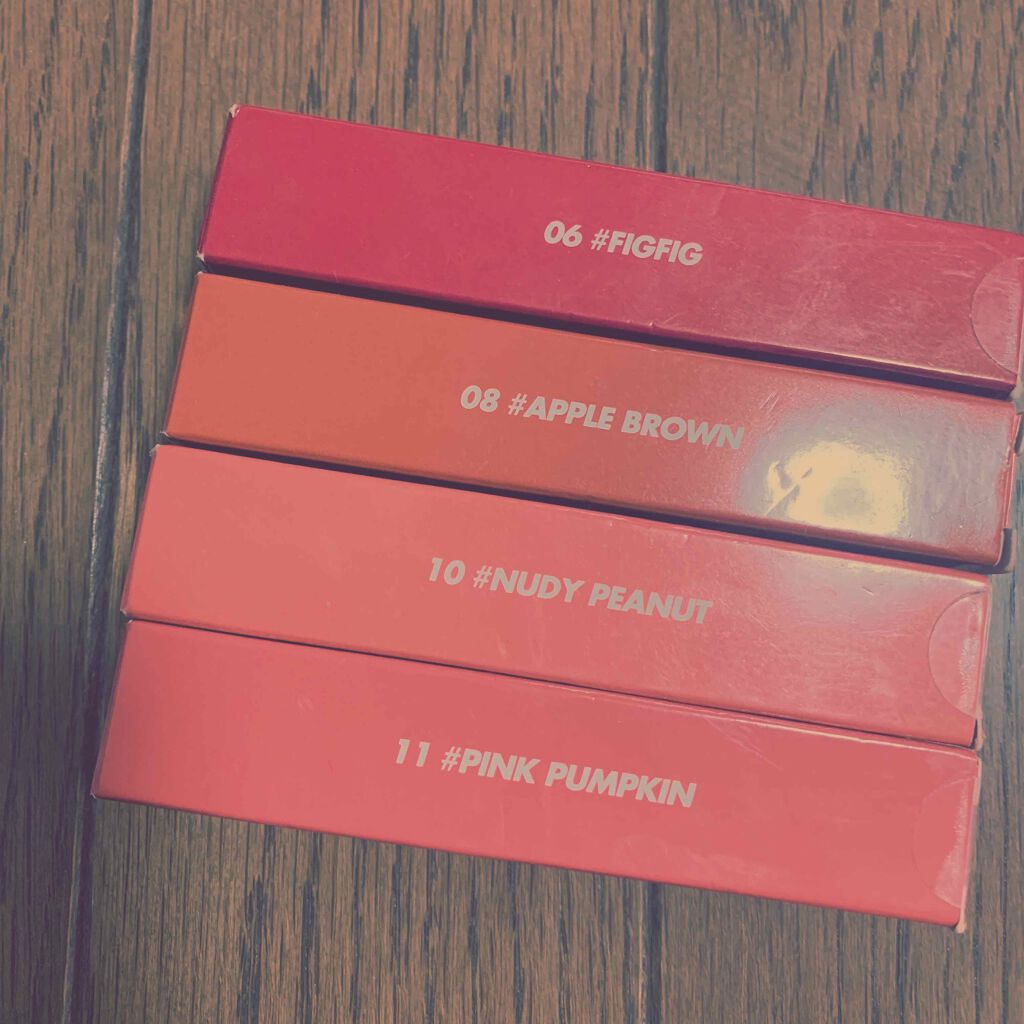 - <06 フィグフィグ(FIGFIG)> 水、オクチルドデカノール、ジメチコン、変性アルコール、アクリレーツコポリマー、ステアリン酸ソルビタン、エチルセルロース、ベヘニルアルコール、ペンチレングリコール、キウイエキス、パパイア果実エキス、グレープフルーツ果実エキス、ココヤシ果実エキス、マンゴー果実エキス、グアバ果実エキス、ポリソルベート60、シリカ、(アクリル酸Na/アクリロイルジメチルタウリンNa)コポリマー、リンゴ酸ジイソステアリル、トリイソステアリン酸ポリグリセリル-2、イソヘキサデカン、ポリソルベート80、ジイソステアリン酸ポリグリセリル-2、オレイン酸ソルビタン、エチルヘキシルグリセリン、BG、EDTA-2Na、フェノキシエタノール、香料、酸化チタン、酸化鉄、赤202、赤227、黄5、赤102、青1 <07 ジュジュブ(JUJUBE)> 水、オクチルドデカノール、ジメチコン、変性アルコール、アクリレーツコポリマー、ステアリン酸ソルビタン、エチルセルロース、ベヘニルアルコール、ペンチレングリコール、キウイエキス、パパイア果実エキス、グレープフルーツ果実エキス、ココヤシ果実エキス、マンゴー果実エキス、グアバ果実エキス、ポリソルベート60、シリカ、(アクリル酸Na/アクリロイルジメチルタウリンNa)コポリマー、トリイソステアリン酸ポリグリセリル-2、リンゴ酸ジイソステアリル、イソヘキサデカン、ポリソルベート80、ジイソステアリン酸ポリグリセリル-2、オレイン酸ソルビタン、エチルヘキシルグリセリン、BG、EDTA-2Na、フェノキシエタノール、香料、酸化チタン、酸化鉄、赤202、赤227、黄5、黄4、青1 <08 アップルブラウン(APPLE BROWN)> 水、オクチルドデカノール、ジメチコン、変性アルコール、アクリレーツコポリマー、ステアリン酸ソルビタン、エチルセルロース、ベヘニルアルコール、ペンチレングリコール、キウイエキス、パパイア果実エキス、グレープフルーツ果実エキス、ココヤシ果実エキス、マンゴー果実エキス、グアバ果実エキス、ポリソルベート60、シリカ、(アクリル酸Na/アクリロイルジメチルタウリンNa)コポリマー、トリイソステアリン酸ポリグリセリル-2、イソヘキサデカン、リンゴ酸ジイソステアリル、ポリソルベート80、ジイソステアリン酸ポリグリセリル-2、オレイン酸ソルビタン、エチルヘキシルグリセリン、BG、EDTA-2Na、フェノキシエタノール、香料、酸化鉄、黄5、赤202、酸化チタン、赤227、青1 <11 ピンクパンプキン(PINK PUMPKIN)> 水、オクチルドデカノール、ジメチコン、変性アルコール、アクリレーツコポリマー、ステアリン酸ソルビタン、エチルセルロース、ベヘニルアルコール、ペンチレングリコール、キウイエキス、パパイア果実エキス、グレープフルーツ果実エキス、ココヤシ果実エキス、マンゴー果実エキス、グアバ果実エキス、ポリソルベート60、シリカ、(アクリル酸Na/アクリロイルジメチルタウリンNa)コポリマー、リンゴ酸ジイソステアリル、イソヘキサデカン、トリイソステアリン酸ポリグリセリル-2、ポリソルベート80、ジイソステアリン酸ポリグリセリル-2、オレイン酸ソルビタン、エチルヘキシルグリセリン、BG、EDTA-2Na、フェノキシエタノール、香料、酸化チタン、酸化鉄、赤202、黄4、赤227、黄5、赤104(1) <22 ポメロスキン(POMELO SKIN)> 水、オクチルドデカノール、ジメチコン、変性アルコール、アクリレーツコポリマー、ポリソルベート60、エチルセルロース、ベヘニルアルコール、ペンチレングリコール、(アクリル酸Na/アクリロイルジメチルタウリンNa)コポリマー、シリカ、ステアリン酸ソルビタン、イソヘキサデカン、リンゴ酸ジイソステアリル、フェノキシエタノール、酸化チタン、トリイソステアリン酸ポリグリセリル-2、ポリソルベート80、酸化鉄、香料、オレイン酸ソルビタン、エチレンジアミンジコハク酸3Na、エチルヘキシルグリセリン、赤202、ジイソステアリン酸ポリグリセリル-2、赤227、黄5、青1、BG、キウイエキス、パパイア果実エキス、グレープフルーツ果実エキス、ココヤシ果実、マンゴー果実エキス、グアバ果実エキス <23 ヌカダミア(NUCADAMIA)> 水、オクチルドデカノール、ジメチコン、変性アルコール、アクリレーツコポリマー、ポリソルベート60、エチルセルロース、ベヘニルアルコール、ペンチレングリコール、(アクリル酸Na/アクリロイルジメチルタウリンNa)コポリマー、シリカ、ステアリン酸ソルビタン、イソヘキサデカン、フェノキシエタノール、リンゴ酸ジイソステアリル、酸化チタン、ポリソルベート80、トリイソステアリン酸ポリグリセリル-2、酸化鉄、香料、オレイン酸ソルビタン、エチレンジアミンジコハク酸3Na、赤202、赤227、黄5、ジイソステアリン酸ポリグリセリル-2、エチルヘキシルグリセリン、黄4、青1、BG、キウイエキス、パパイア果実エキス、グレープフルーツ果実エキス、ココヤシ果実、マンゴー果実エキス <24 ピーリングエンドゥ(PEELING ANGDOO)> 水、オクチルドデカノール、ジメチコン、変性アル