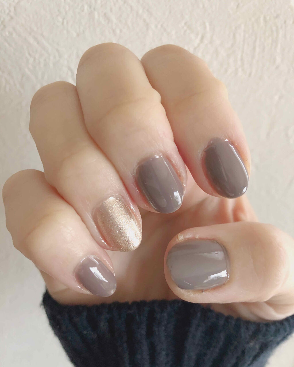 先だけ剥がれたり、かけたりしない剥がれにくいメリットありありのジェルネイルシール💅✨イイんですよ😻今回はシンプルでプルプルでシアーな感じのグレージュ×ゴールドラメ✨#ネイル#Seria#ジェルネイルシール...