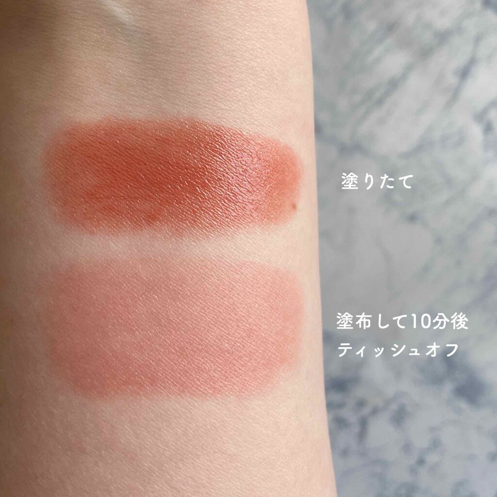 手に出してみると結構赤みが出るんですが唇に塗布してみると名前の通りロゼミルクティーな感じ白みがあるカラーです ティント効果はかなり穏やかだけどなめらかで塗り心地いいから塗り直したくなるリップです