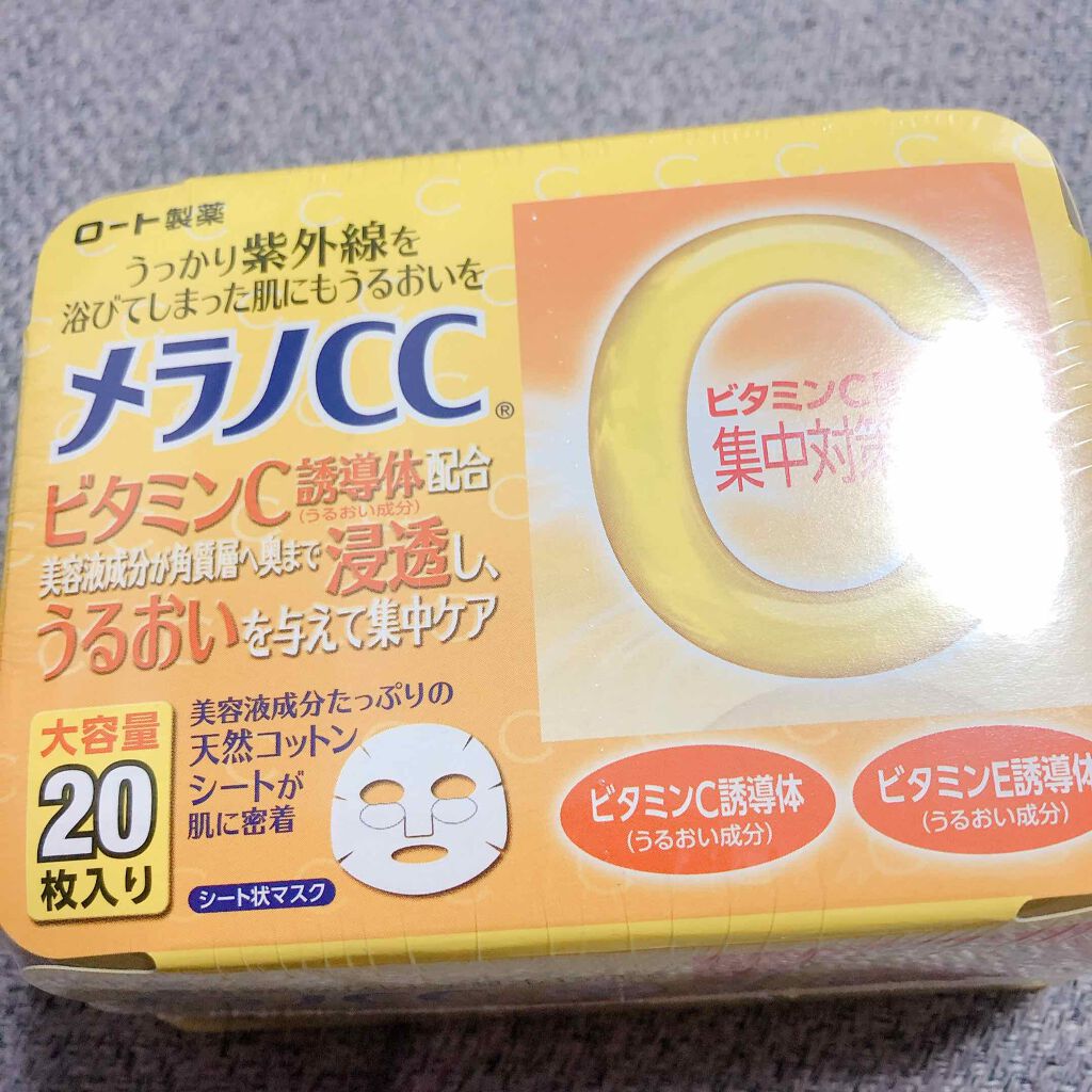 - 「メラノCC 集中対策 マスク」は、美容液成分をたっぷり含んだ美容マスク。肌になじみやすく、密着力に優れた天然コットン100%のシートを使用しています。 4種類のうるおい成分*を配合。美容液成分が角質層すみずみまで浸透し、うるおいを与えます。 紫外線を浴びた後など、肌の乾燥が気になる時の集中保湿ケアにおすすめです。 爽やかな柑橘系の香り。 取り出しやすいボックスタイプ。大容量の20枚入り。 *ビタミンC誘導体、ビタミンE誘導体、グレープフルーツエキス、レモンエキス 大容量20枚入り