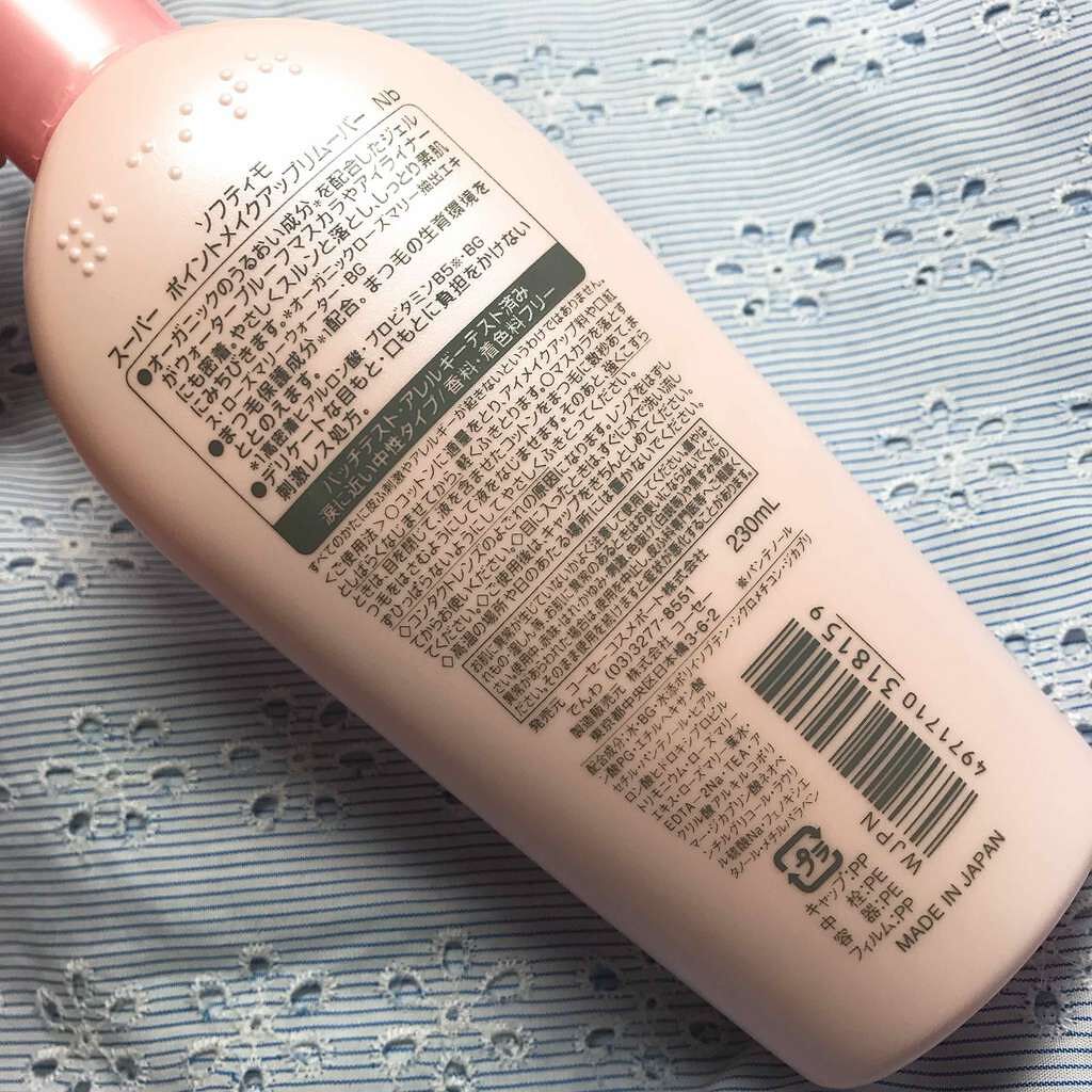 ソフティモのポイントメイクリムーバー かわいい容器はなんとポケモンとコラボした限定デザイン✨ ボトル裏面には点字表記あり! ウォータープルーフのマスカラやアイライナーにもしっかり密着してくれるジェルタイプ 乳白色のリムーバーで香りについては特徴なし、全体的にクセがなくて扱いやすいです◎ 強くこすらずひっぱらないようにやさしくふきとるのがポイント