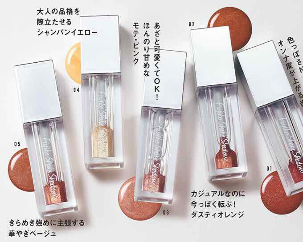 - 特徴は、水と光の粒をシェイクして使う『油分ゼロ』の新発想。 完全ウォーターベースのため、従来のシャドウよりも皮脂に強くヨレにくく、まぶたにピタっと密着。「二重幅にたまる」現象も軽減。 まぶたで煌めく光の粒が、どの角度から見られても女映えする色っぽい目元を演出し、”塗った瞬間、いきなり可愛い”を叶えます。 またチークやリップにもマルチに使えるため、ポーチに1本あればいつでもメイクチェンジが楽しめます。 頬につけると、ほどよい血色感とツヤ。唇にのせると、イマドキのメタリップマットリップが完成です。 ◆光の粒と生透け感で目元を大きく、印象的に輝かすブラウントーンの5色展開。