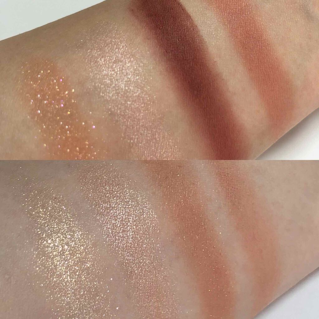 使用感としてはクリーミーなタッチで するする〜っと滑らかにかけます🎶 それなのに少しおくとピタッと密着して 指で擦っただけでは落ちないしよれない😳❗️ R1 KISS FROM A ROSEは ペタルピンクカラー✨ 購入した4色の中で1番可愛らしいカラー💓 シルバーラメがたっぷりで透明感があるなぁという感じ😊 ピンクパールも煌めいて本当に可愛いカラー🥰 R2 WILD ROSEは シャンパンピンクカラー✨ ベージュ寄りのカラーで、ピンク感が少なめなので 肌馴染みが良い🙆♀️ 涙袋にのせても可愛いカラーです💓 使いやすいカラーであまり使う人を選ばないカラーかなと思います❣️ R3 STRIKE A ROSEは テラコッタローズカラー✨ ややオレンジみのあるカラーで カジュアルな感じのメイクにぴったりなカラー😊 チラチラと煌めくラメが可愛いです💕 R4 BED OF ROSESは ローズピンクカラー💓 くすみ感のあるカラーで、ピンクやブルーのパールがたっぷり😍 とってもおしゃれなカラー❣️