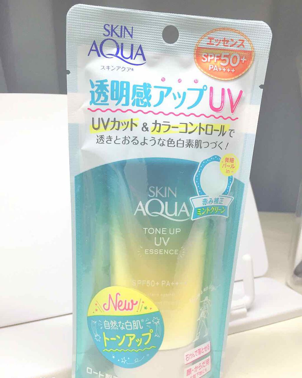 皆さんこんにちは(*^^*)自粛中は何をしていますか?今回は最近薬局に行った時に買った日焼け止めをご紹介したいと思います😊名前は>>>>スキンアクアトーンアップUVエッセンスMaミントグリーンです!!!!!こちらの日焼け止めはよく紹介されてい...