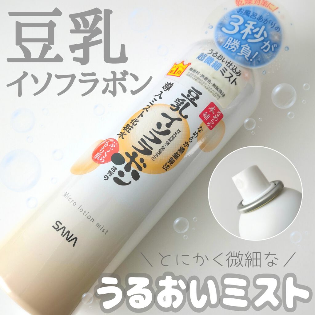 お風呂上がり3秒で保湿できるスプレー化粧水✨ 細かなミストが気持ちよく使えて、お風呂上がりすぐスキンケアできなくての突っ張り感も感じなくなるし、その後のスキンケアの導入化粧水にもなってくれる👏 毛穴より細かく、肌あたりの良いマイクロミストが角層まで浸透し、うるおいのあるお肌に導く😊 九州産大豆「ふくゆたか」から作られた高純度豆乳イソフラボンと豆乳発酵液、さらにヒト型セラミド配合🙌