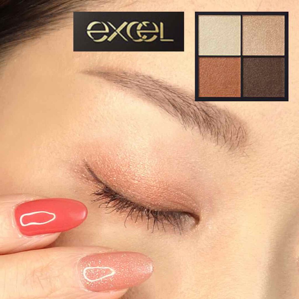 - 1.重ねてもくすまないクリアな発色。ナチュラルに溶け合う絶妙4カラー。 ツヤタイプ(左上・左下カラー):アイホール全体にぼかしたり、目尻へのポイント使いも。 ラメタイプ(右上カラー):アイホール中心や下まぶたにきらめきのアクセント。 マットタイプ(右下カラー):単色で陰影を付けたり、ツヤタイプと重ねてニュアンスをプラス。 2.うっとりするほどリッチな質感で粉飛びしないのに、軽いタッチで伸びて重ねやすいテクスチャー。 3.スクワラン(保湿)配合で目元の乾燥を防ぎます。 [PERFORMANCE] 色と質感の重ね着を楽しむ、ファッション感覚アイシャドウパレット [DESIGN] ・まぶたにひっかからない、なめらかな上質チップ ・薄型コンパクトだからポーチの中でかさばらない [QUALITY] 1.重ねてもくすまないクリアな発色 ナチュラルに溶け合う絶妙4カラー 2.パールの重ね技でまぶたに極上のツヤ感 微細多色 カラーパール 銀コーティング ガラスパール* excel GOLD-MIX処方(金パール配合)* (*右上のシャイニーカラーのみ) 3.うっとりするほどリッチな質感で粉飛び知らず!なのに、軽いタッチで伸びて重ねやすい 4.スクワラン(保湿)配合で目元の乾燥を防ぐ