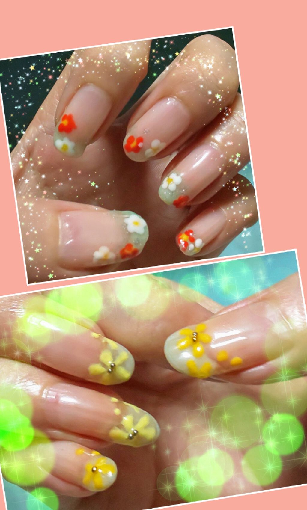セリアジェルネイルヌードベージュネオンピンクブラウンホワイトマットトップ細い筆でとけたチョコレートを書く(見本があればそれをみながら)紗々風はブラウンを細い筆で1回引いて硬化プクッてさせたい場合は何回か繰り返し次にホワイトを同じようにやる親指...