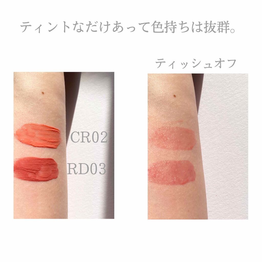 | リップティントランキング第55位 | 唇にピタッと密着しているような感じがあり、なじみが良い 1度塗りだと薄づきでナチュラルな発色になり、塗り重ねていくとしっかり発色して可愛い | 詳細を見る | |