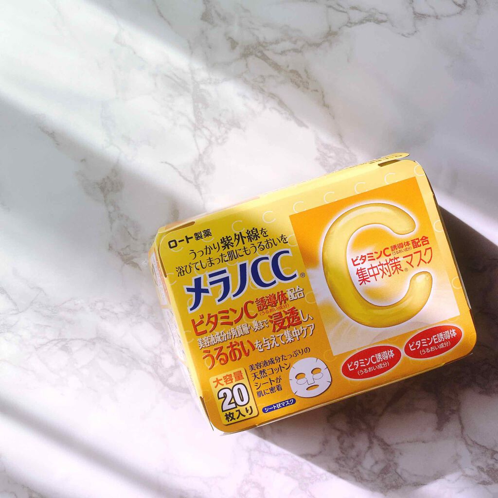 - 「メラノCC 集中対策 マスク」は、美容液成分をたっぷり含んだ美容マスク。肌になじみやすく、密着力に優れた天然コットン100%のシートを使用しています。 4種類のうるおい成分*を配合。美容液成分が角質層すみずみまで浸透し、うるおいを与えます。 紫外線を浴びた後など、肌の乾燥が気になる時の集中保湿ケアにおすすめです。 爽やかな柑橘系の香り。 取り出しやすいボックスタイプ。大容量の20枚入り。 *ビタミンC誘導体、ビタミンE誘導体、グレープフルーツエキス、レモンエキス 大容量20枚入り