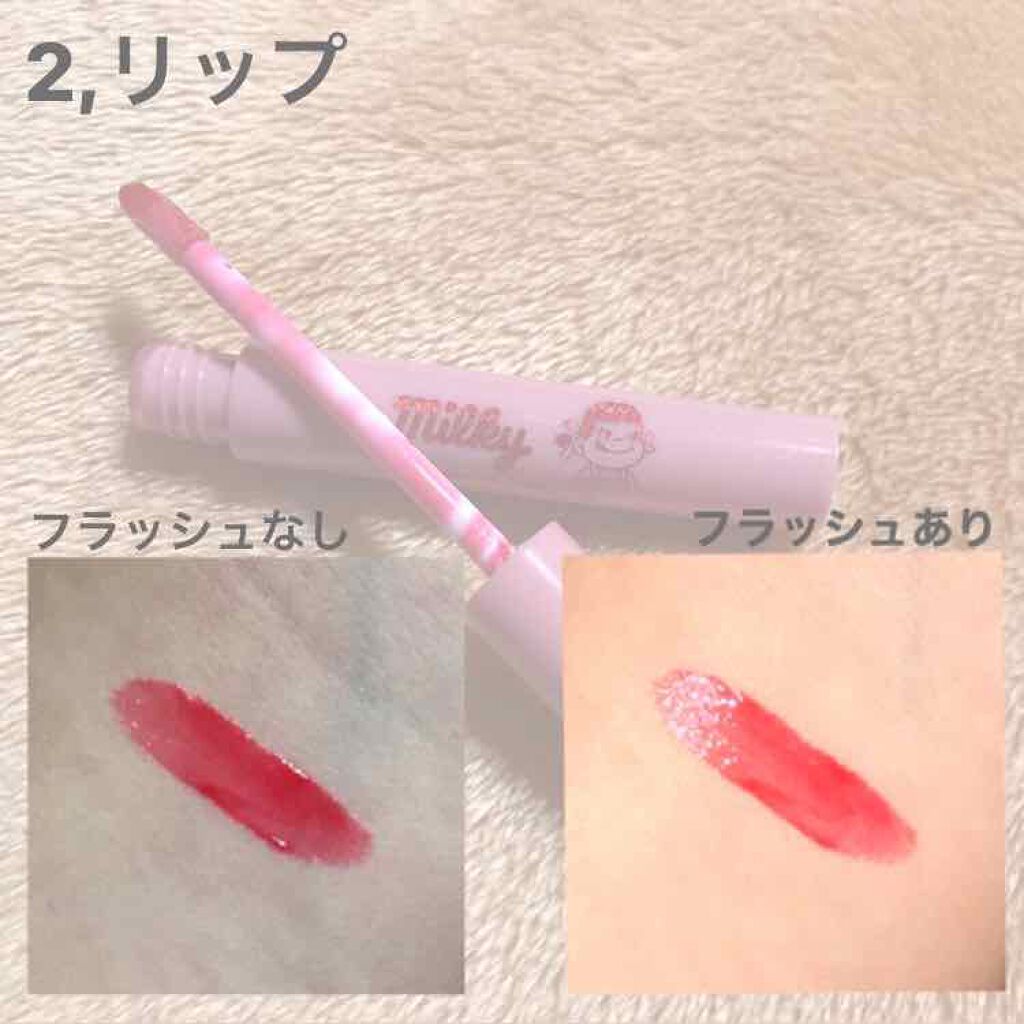01唇に塗るとさくらんぼみたいな発色で超カワイイ🍒ラメは入ってない02ピンクよりの赤!上品な唇になるゾこれは!03オレンジでカワイイ!ラメがぎっしり詰まってて夏に良いかも!0402よりもピンク色!すごいラメが🤩このリップのマイナス点・色落ち早...