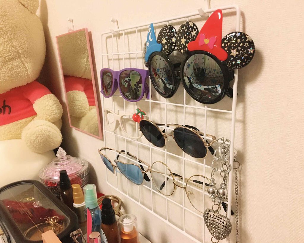 メイク収納公開します!ほとんどがDAISOで買ったものです。大きさは2枚目以降をみていただけるとわかると思います!サングラスはワイヤーネットを使ってまとめています。#メイク収納#サングラス#DAISO#DAISO#コスメ収納#コスメ大公開ウィ...