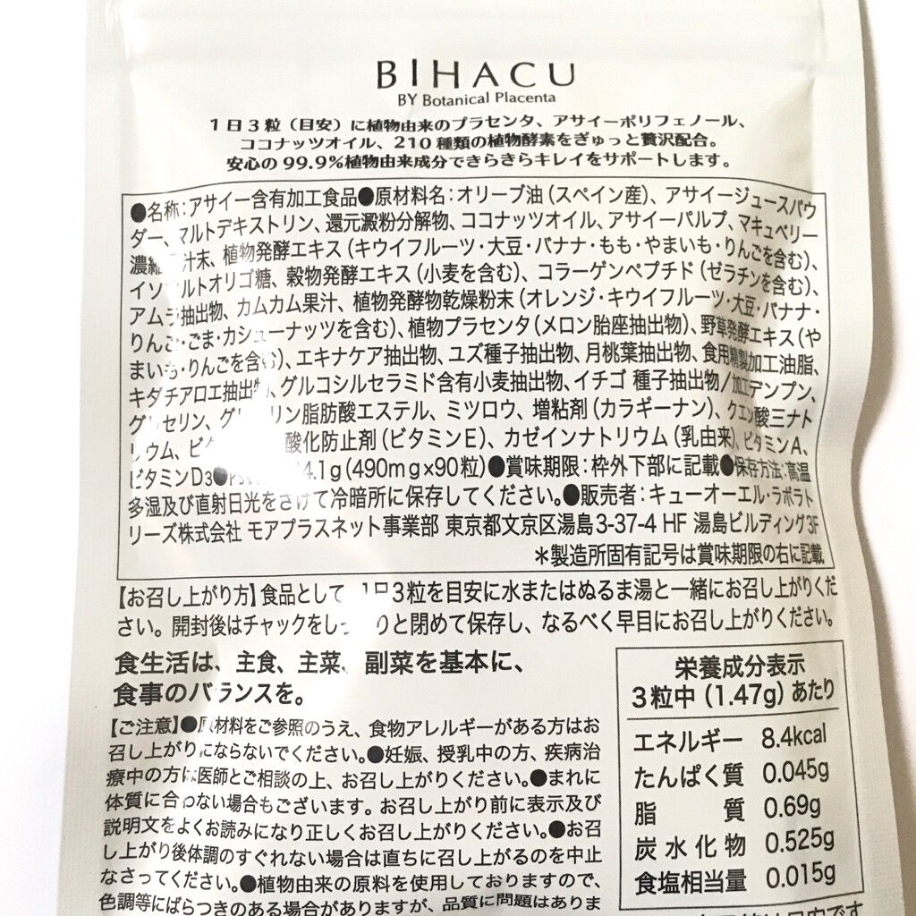 - 『BIHACU』の大きな特徴は、お肌を守りながら攻めることで、美白をサポートすることです。『BIHACU』には美肌を守るアサイーポリフェノールと、美肌を攻める植物プラセンタが配合されています。アサイーポリフェノールは抗酸化作用があり、お肌のシミやシワを作る原因となる活性酸素の除去に役立ちます。また、植物プラセンタは女性ホルモンであるエストロゲンと似たような働きをすると言われており、女性らしさをサポートしてくれます。他にもビタミンCの王様と呼ばれるカムカムをはじめ、月桃葉やマキュベリー、さらには210種類の植物発酵エキスを配合しており、内側からの美のトータルケアも期待できます。