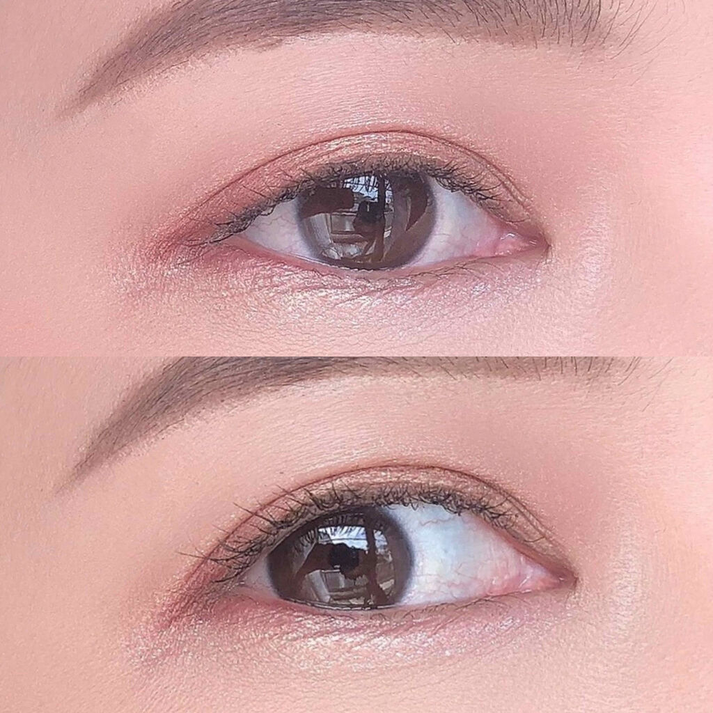 思っていたより三日月が目立つ! 目元をアップで撮影した時のかわいさは大満足♡ このデザインはあまりハイライトが目立たないものをこれからは選びたいと思いました。 ドリームブラウンはブラウンの部分がほとんど発色せずほんのり瞳の色が明るくなったかな?くらい。 ピーチクラウズより三日月部分が目立ちました。 瞳がパープルがかって見える効果は感じました◎ 私はブラウンよりこちらの方がデザインとしてバランスがとれていると思う。 ブラウンは黄色くなるからくすみやすくてイエベ向けですがピンクはパーソナルカラー関係なく使える色味です。