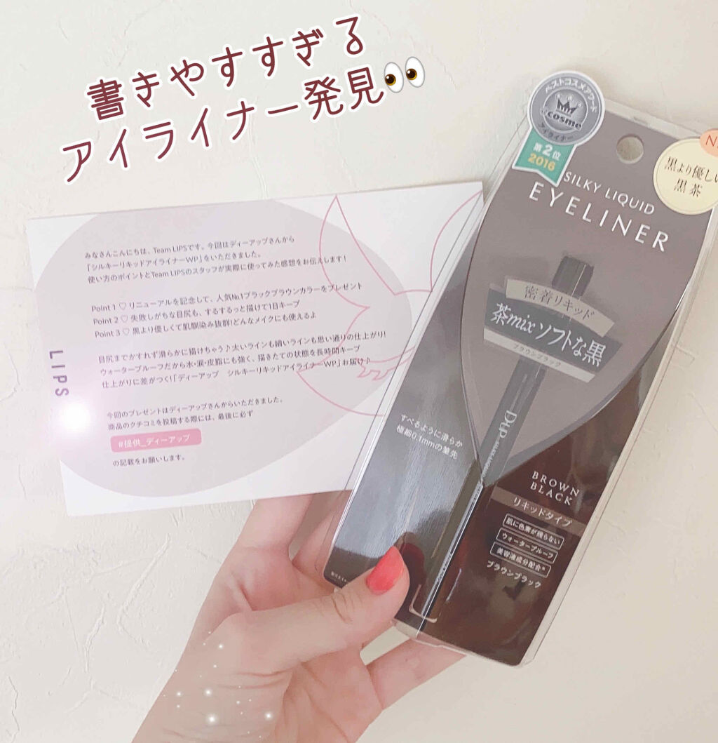 \クリスマスデートにピッタリのカラー🧸/[PR]LIPSを通じてD-UPさまに商品提供いただきました🙇♀️⚫︎D-UPシルキーリキッドアイライナーWPBRBKブラウンブラック¥1,430(税込)\POINT/▼安定の描きやすさD-UPの長所...