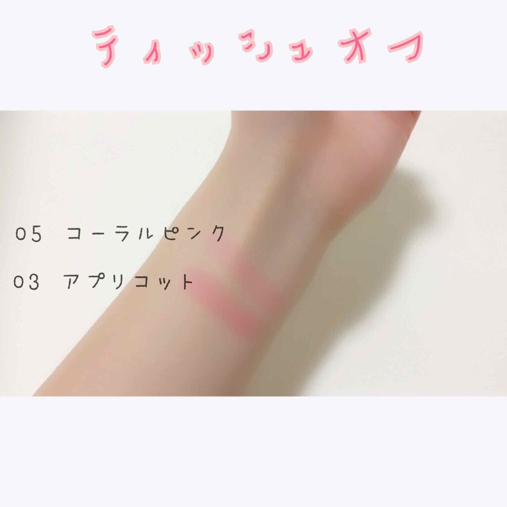 多幸感あふれるクリアなコーラル🩷 特に時間が経つと蛍光感がでてきちゃう。 THEピンクのリップを求めている人にピッタリ! ティッシュオフしても若干色は残ってる! おすすめの塗り方は、いつもよりも少し濃いめに塗ってから、ティッシュオフ!