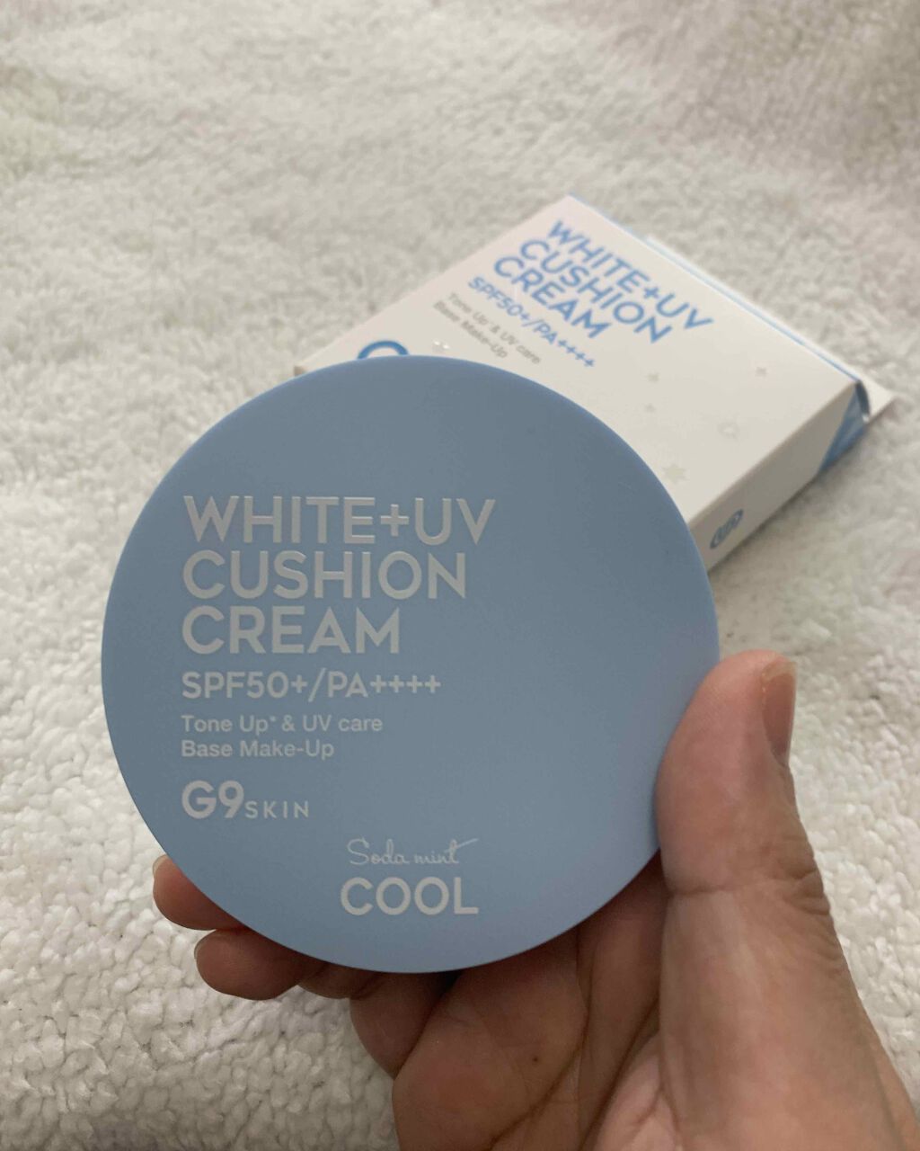 G9SKINホワイトクリーミークッションクール15g 1800円+税青のクールタイプは数量限定&日本限定です。暑くなってきたのでついついクールコスメに手が伸びてしまいます😅💦プライマー、日焼け止め、トーンアップの3役が叶うクッションタイプの化...