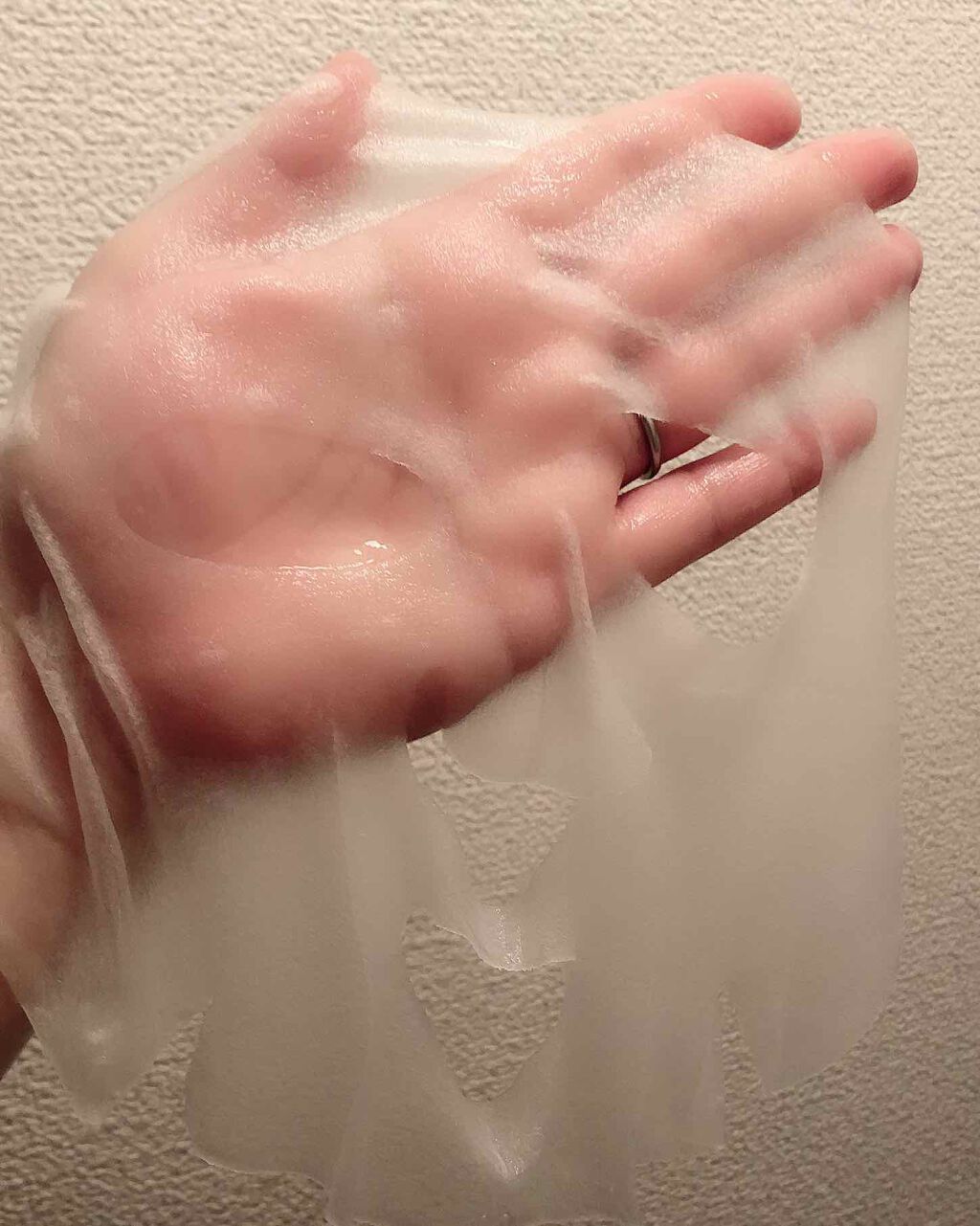 | 美容液がヒタヒタ!!フェイスラインやおでこまでしっかりカバーできる 大きめサイズ、伸びる素材なのが特徴◎ | 詳細を見る |