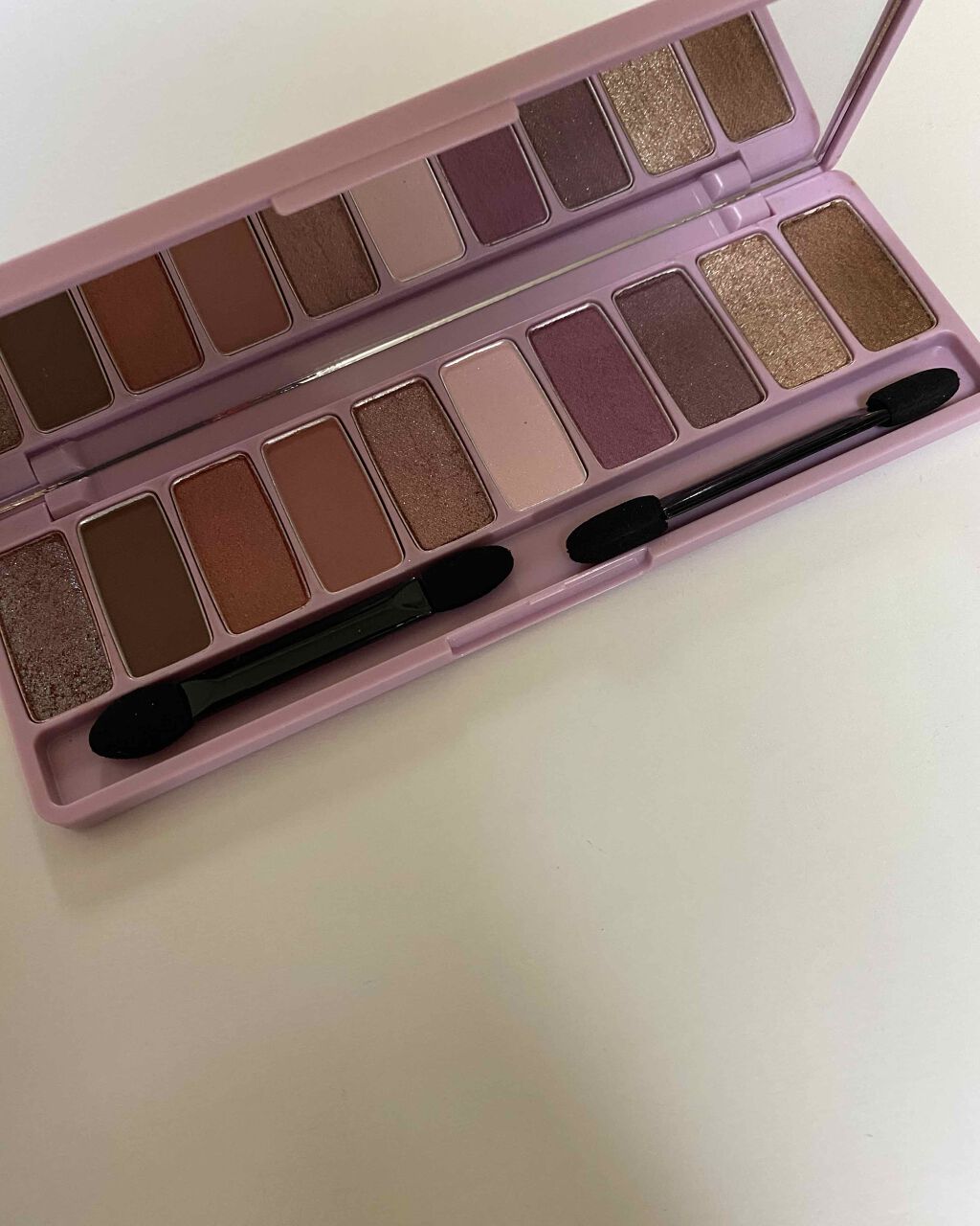 ロゼピンク系のカラーが配色されたパレット! マットもラメも入ってるし、10色もあると色々なメイク出来ると思います。 使いやすい感じのナチュラルな色味の配色になっててほわっとしたピンクメイクになって可愛い🩷 このシリーズほんと可愛いし、持ってないパレットも欲しいな〜