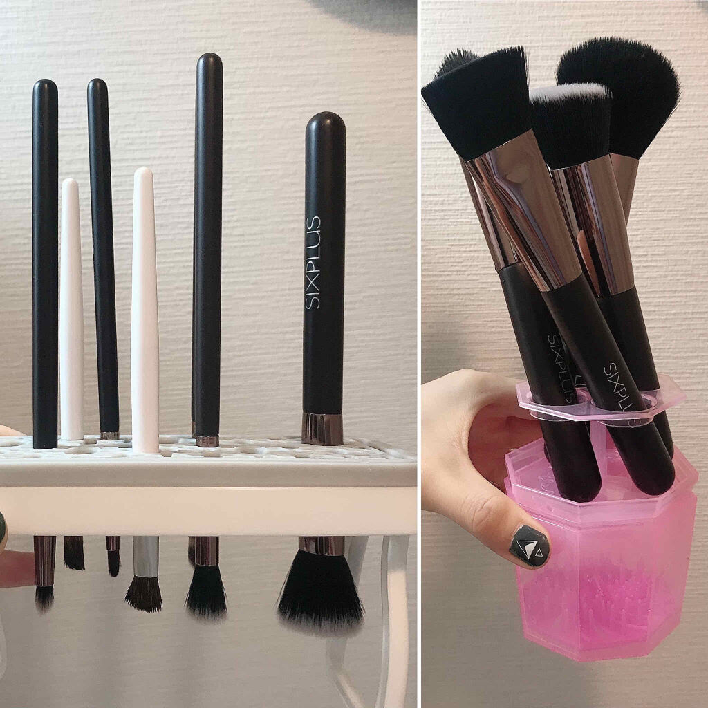 メイクブラシ洗うの面倒な人は大集合。 ぶっちゃけると、これに出会う前はほぼブラシ洗ってなかった笑 ブラシ洗うと清潔だし、メイクノリも変わるので、これじゃなくてもいいから生活に取り入れやすいお掃除グッズは必要だと思う😌 ブラシスタンドは折りたためてコンパクト