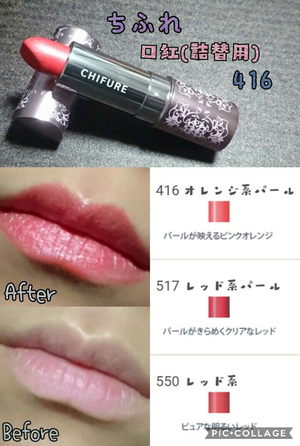 - 美容液*と同じくらいヒアルロン酸を配合した、しっとりうるおう口紅。 「ちふれ 美容液 ノンアルコールタイプ」と同じ濃度(0.2%)の保湿成分ヒアルロン酸を配合。なめらかにのびて、くちびるにフィット。しっとり、ふっくらとした女性らしい口もとを演出します。 別売りのケースと組み合わせて、オリジナルの口紅を楽しめます。 *ちふれ 美容液 ノンアルコールタイプ 保湿成分:ヒアルロン酸 配合 油性エモリエント成分:マカデミア種子油 配合 無香料・ケース別売 【使用方法】 ・簡易キャップをはずし、ケースにしっかりと差し込んで使います。 ケースにセットしない時は必ず簡易キャップをしてください。 ・1.5cmくらい出して、直接またはリップブラシを使って、唇によくなじませるようにぬり込みます。 ・必ず専用ケース(別売り)にセットしてお使いください。 【口紅からエコのお話】 ちふれブランドの「口紅(詰替用)」は、ケースを何度も再利用しながら使えるタイプです。 組み合わせは自由自在。お気に入りの色を選んでケースにセットするだけで、自分だけの口紅ができあがり! しかもこんな小さな気配りで環境にも配慮できる、とってもかしこい口紅です。