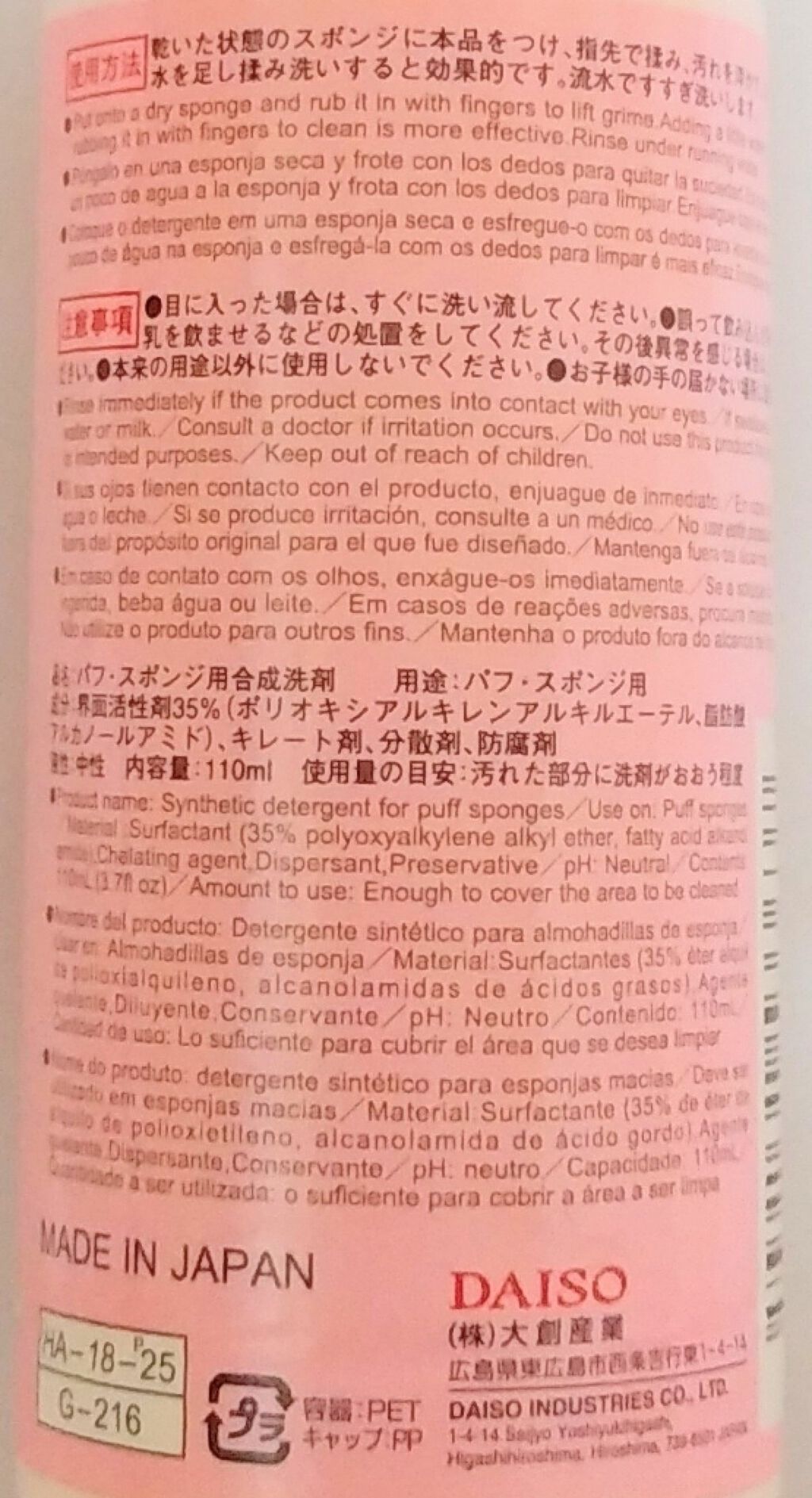 商品詳細情報DAISO パフ・スポンジ専用洗剤