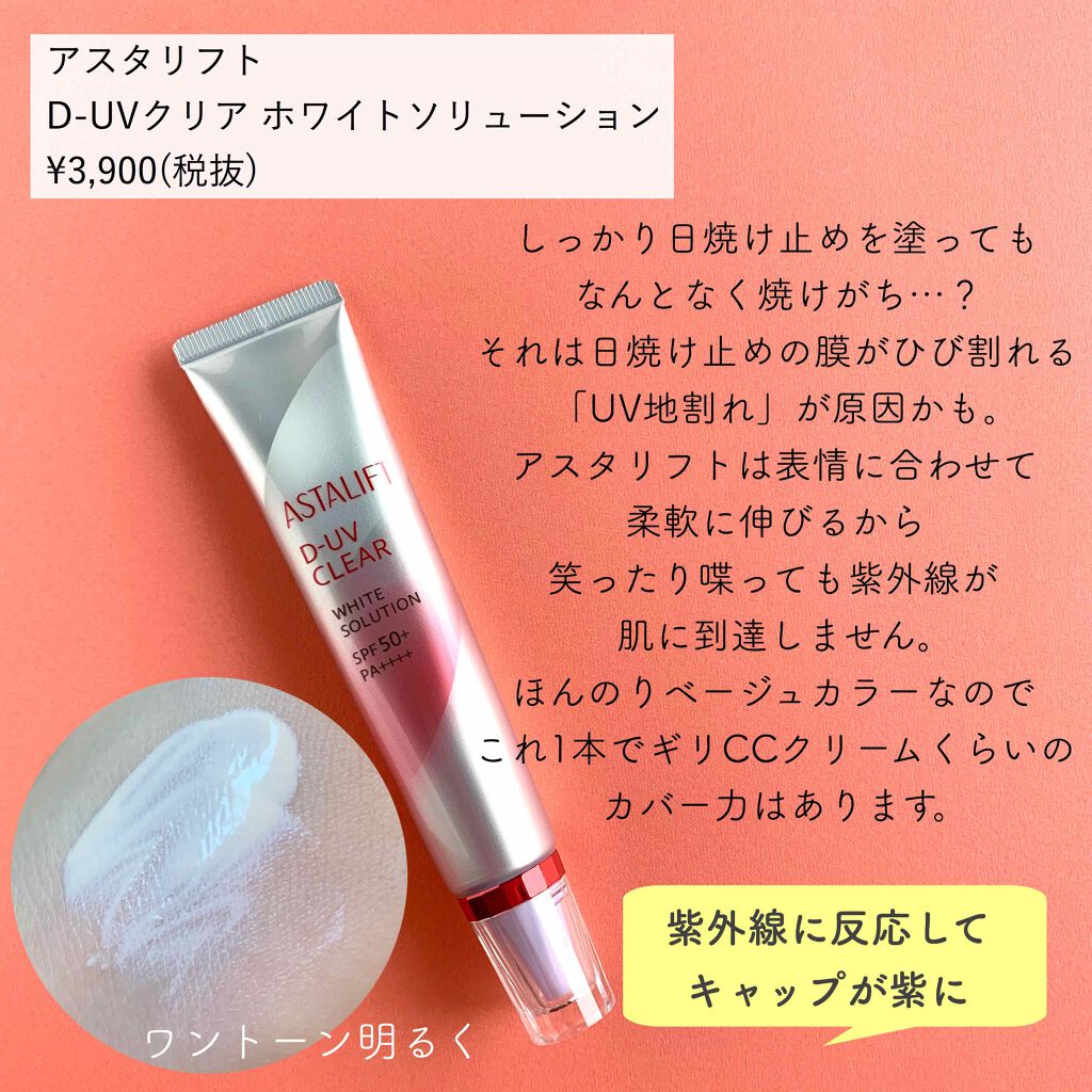 \肌の奥まで突き刺さる紫外線もバリア☀️/アスタリフトD-UVシールドトーンアップ税込4,290円肌の奥まで突き刺さる「Deep紫外線」までしっかりカットし、日焼けによるシミを予防!みずみずしく、伸びが良いテクスチャーなのに塗っていくと、ピタ...