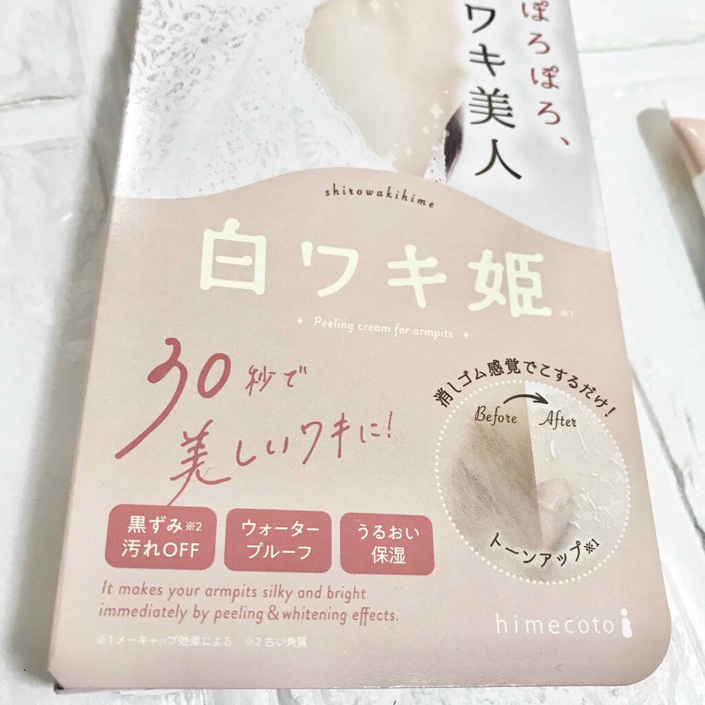 - ワキの黒ずみに塗ってポロポロ30秒で、一日中ワキ美人※1。 消しゴム感覚でこするだけで、黒ずみ※2や古い角質をピーリング&ホワイトコーティング※1します。 更にウォータープルーフ効果で、汗かく夏場や海、プールの際も白く美しいワキに※1! ※1 メーキャップ効果による ※2 古い角質