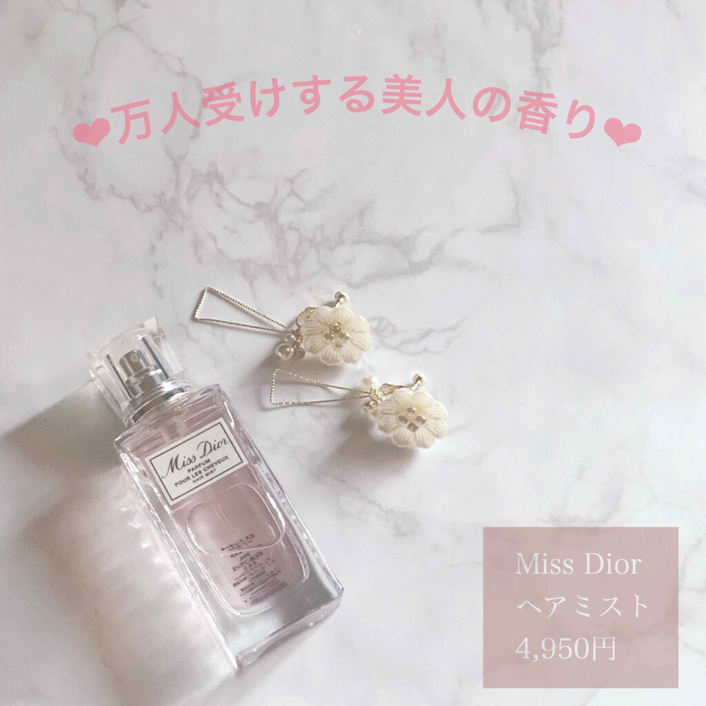 - ミス ディオールから、魅惑的なエレガンスを演出する新しいヘアミストが誕生。フレッシュな香りを長持ちさせながら、髪を健やかに整え保護する成分を配合。有用成分を含んだフォーミュラが、髪をほのかな香りでドレスアップします。