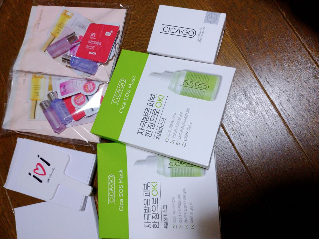 会社員Aちゃんオススメしてて気になって買いました♥️ ISOI☺️ CICAGOシカ ダブル エフェクト アンプル 1+1で CICAGO シカ SOSマスクSET 5枚入り。 を買いました😁✨✨ 敏感肌や、皮膚が損傷したりしてるのにきいたりするみたいです♥️気になりすぎてかっちゃいました(笑) Qoo10や楽天にも公式あります‼️ ミラーやサンプルもたくさん!!( ; ロ)゚ ゚ 日本語のパンフレットも入っててめちゃめちゃ素敵だと思いました。 値段はそこそこするので、他の敏感肌とかいろいろシリーズ気になる♥️ ローズの美容液も気になってます。 使うの楽しみ😁✨✨